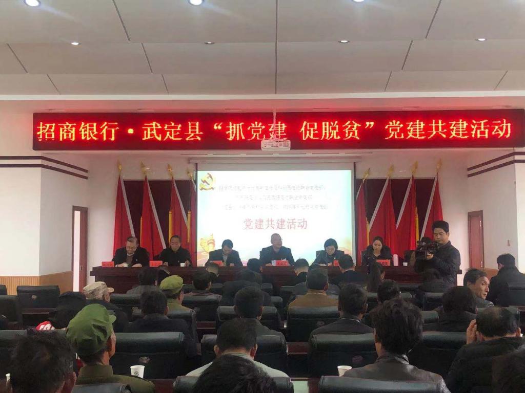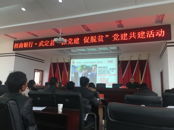 为促进金融机构和基层党组织优势互补、共同进步,全力助推脱贫攻坚工作,12月3日,招商银行昆明分行高新支行及科创园支行联合党支部和武定县白路镇古黑村党总支、西园路支行及人民西路支行联合党支部和武定县白路镇平地村党总支一同开展“抓党建 促脱贫”党建共建活动。共计70余名党员参加活动,其中农村党员50名。王炳华副县长主持活动。