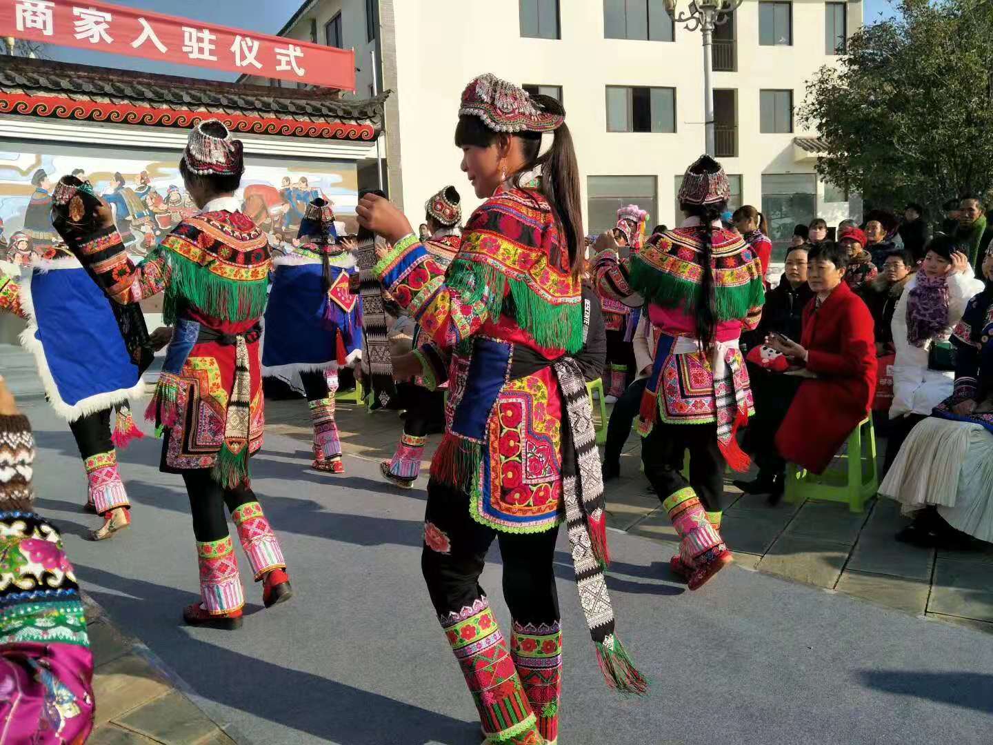 2019年12月10日,我镇老木坝傈僳绣娘参加武定县民族文化广场商家入驻仪式,在仪式上,傈僳绣娘纷纷展示了她们巧手的结晶。惠民绣屋落户狮山大道民族广场旁,是插甸的喜事,是绣娘的盛事!她们的格言是:撸起袖子加油绣!绣出美好幸福新生活!