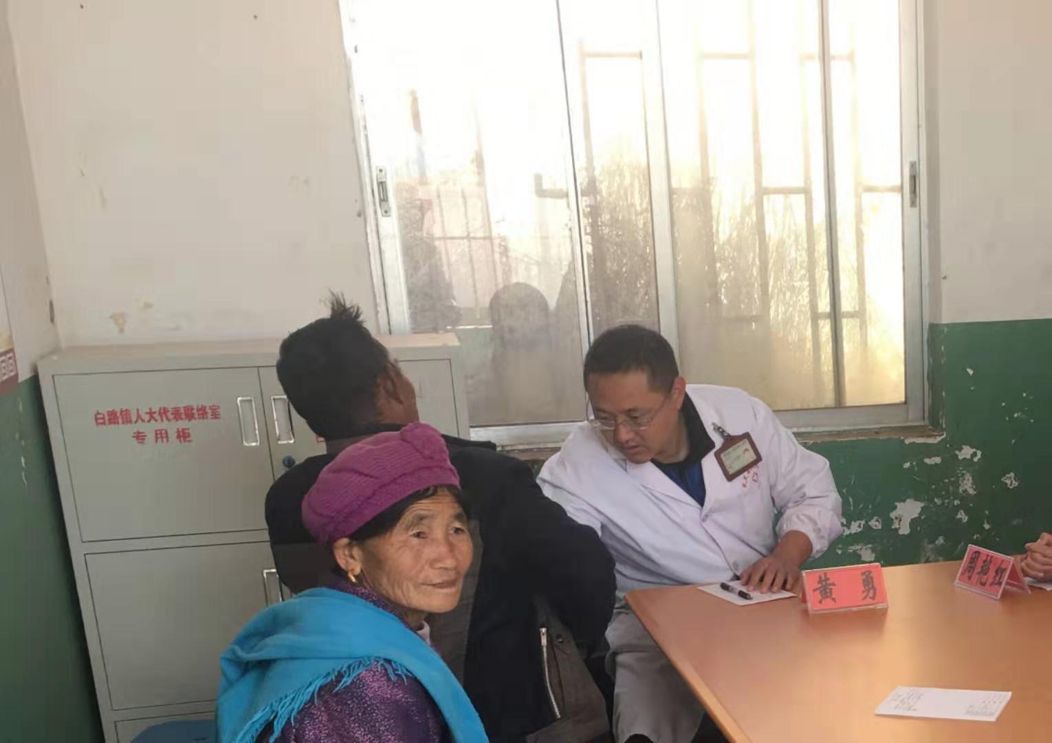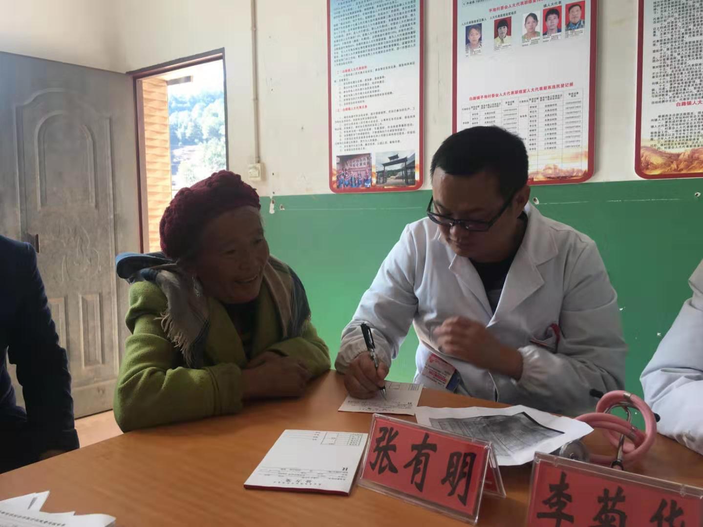队员张有明(楚雄州人民医院对口支援专家)千里迢迢从楚雄州赶来的张医生,在为病人开完药方之后,仍不忘记反复叮咛病人按时服药。