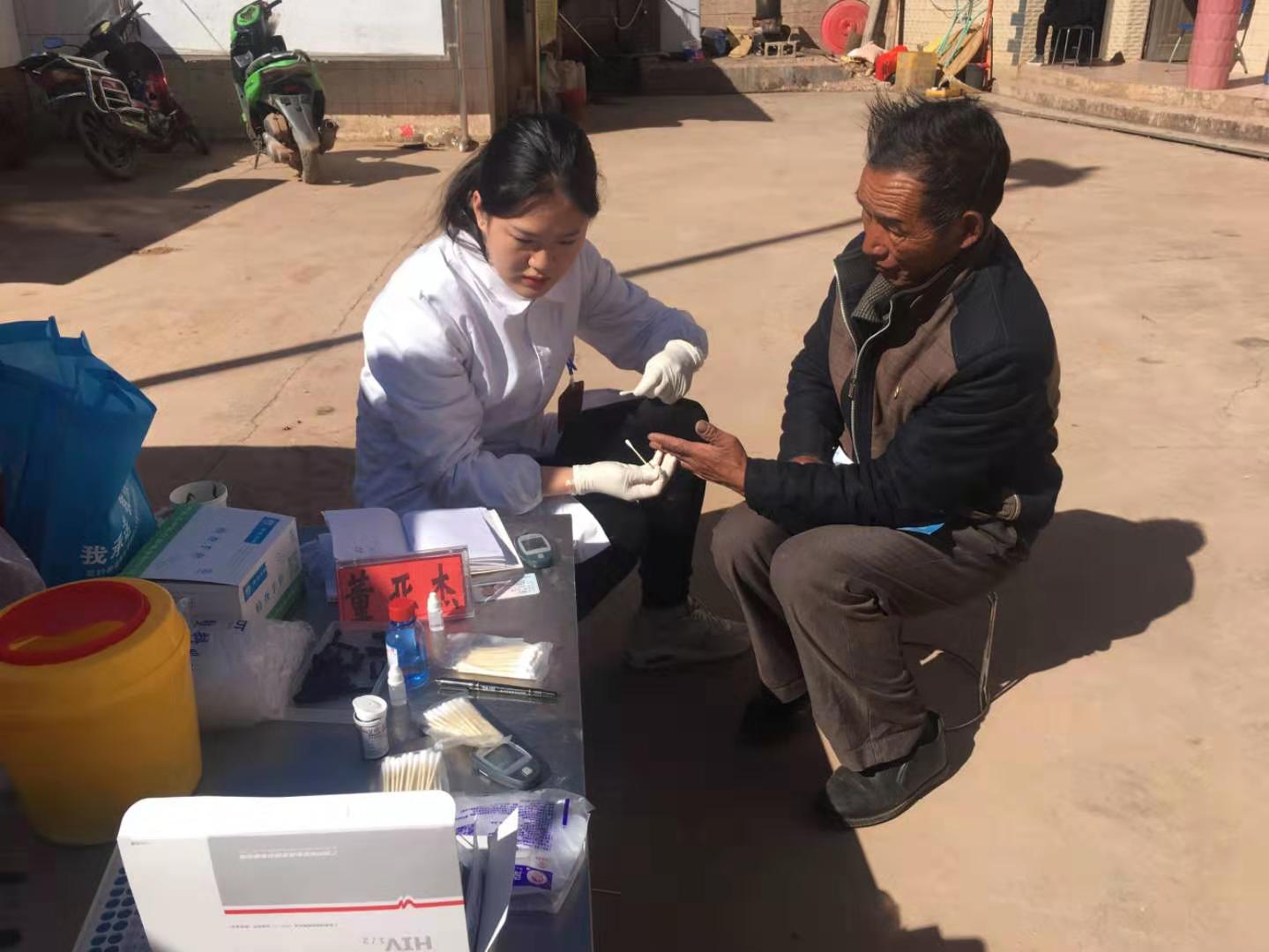 在白路镇卫生院院长毕建华与副院长王晓曦的协调下,在与镇卫生院检验师吴昕润、护士李明凤、医师杨发超等人的合作下、圆满完成第一日的义诊工作。共接诊25例,艾滋病筛查:25例,血糖监测:25例。