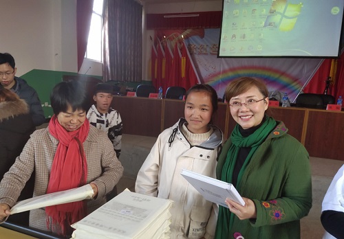 接着,来宾们还对前来参加观影会的家长送上了“全家福”照片。“周恩来班”的师生们还纷纷进行了发言。最后志愿者团队代表还为学校捐赠了爱心礼物。