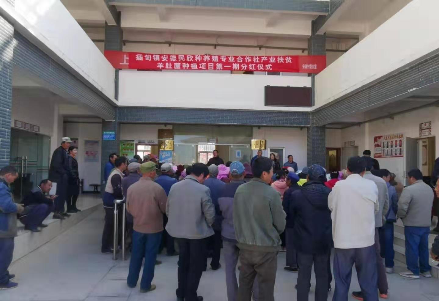 12月25日,安德民欣种养殖专业合作社产业扶贫羊肚菌种植项目第一期分红在安德村委会展开,群众拿到分红的那一刻心中像抹了蜜一样。