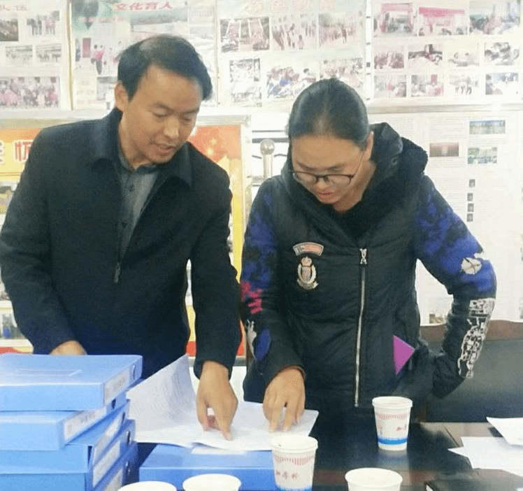 李洪冰副书记和杨绍虎主任核对相关数据。