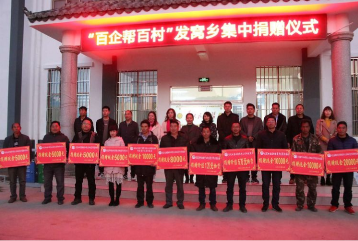会后,“百企帮百村”发窝乡集中捐赠仪式开始,武定比高电器有限公司、武定隆兴购物中心等11家爱心企业向发窝乡集中捐赠13.8万元现金和物资,帮助各村购买“爱心超市”物资和开展文体活动。县委副书记、县长李坚出席捐赠仪式并向参与捐赠的11家企业表示感谢,她指出,在各级党委政府的坚强领导和广大爱心企业的无私帮助下,武定县各项事业健康有序发展,基础设施不断完善,脱贫攻坚成效明显。希望发窝乡不忘初心、牢记使命、心系群众,管好用好帮扶资金和物资,及时补短板、强弱项,下足绣花功夫,坚决打赢打好脱贫攻坚战,为全县高质量通过脱贫攻坚省级第三方评估考核贡献力量。