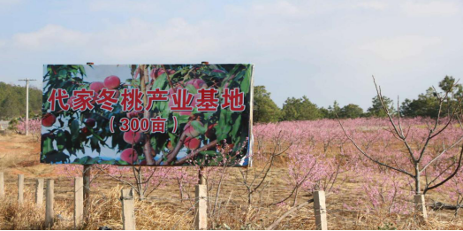 “乡政府的进村入户动员,邀请技术人员对我们进行培训,免费提供桃苗,还请挖机帮我们挖种植沟把树苗种上去。去年,村里的冬桃大丰收,贵州、曲靖、文山等地的老板都到村里面收购,通过电商平台也卖了不少”正在桃园忙碌的村民代自文说。