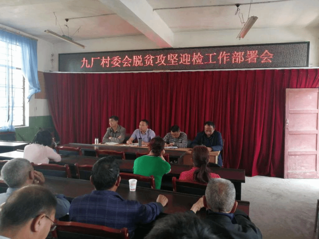 九厂村委会全体党员干部、镇级工作队、驻村工作队及挂包干部切实把成效考核作为重要政治任务,凝聚脱贫攻坚合力,压实工作责任,发扬优良作风,按照“回头看”的要求,再次进村入户全面做好风险隐患排查、脱贫攻坚政策宣传、人居环境提升、“四卡一牌”及档案核实等工作,以破釜沉舟的决心和志在必得的信心,以实现“漏评率和错退率为0,群众认可度99%以上”为目标,全力以赴做好脱贫攻坚考核评估迎检工作。