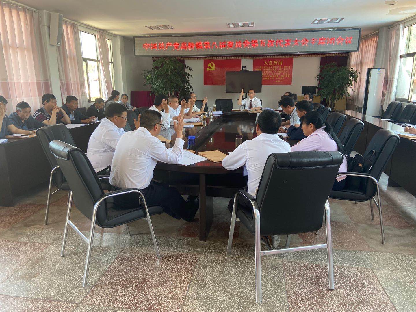 2020年5月11日,和着舞动的阳光,伴着雄壮的国歌,中国共产党高桥镇第八届委员会第五次代表大会隆重开幕。全镇83名党代表,23其他同志列席参加会议,大会由陈会文同志主持。