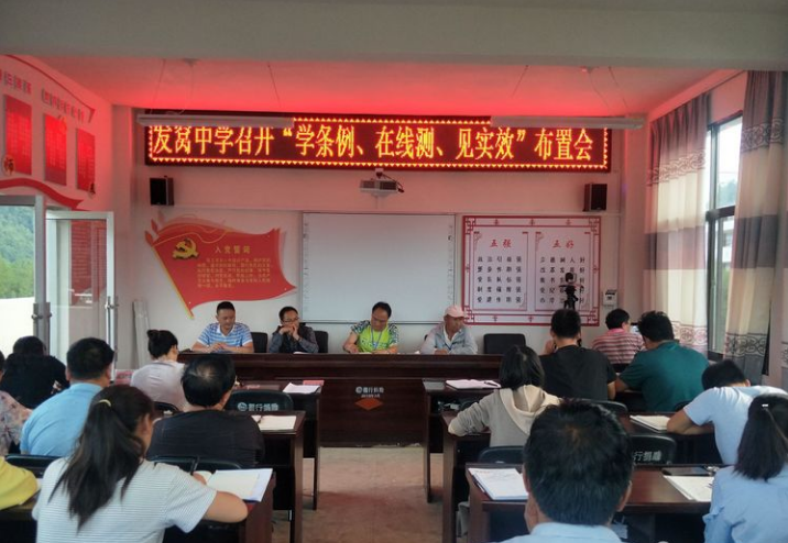 为深入学习贯彻党中央的相关条例,根据县教体局转发县委组织部《关于广泛开展“学条例、在线测、见实效”活动的通知》的文件要求,发窝中学于2020年6月14日晚在大会议室召开“学条例、在线测、见实效”和“法宣在线”学习测试活动大会。会议由全体教职工参加,共三项议程。