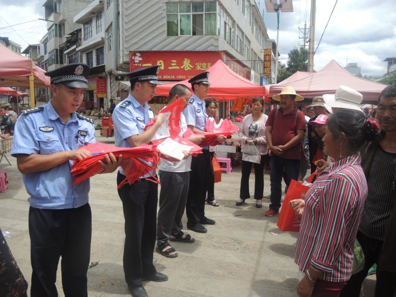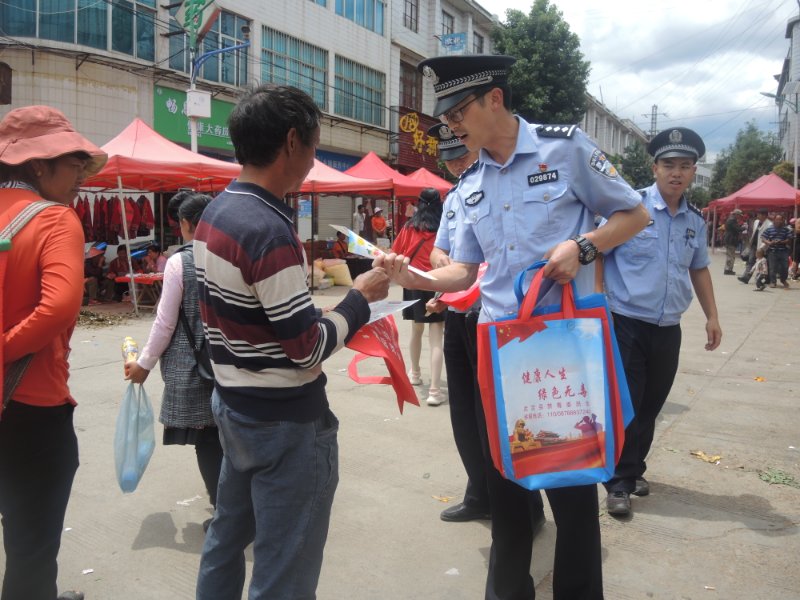 为深入贯彻习近平总书记关于禁毒工作的重要指示精神,全面落实省、州、县禁毒委《关于加强新时代全民禁毒宣传教育工作的指导意见》,6月29日,插甸派出所充分利用赶集日人员密集有利时机,联合综治办、司法所等多家单位在集镇中心开展以“健康人生、绿色无毒”为主题的禁毒宣传教育活动。