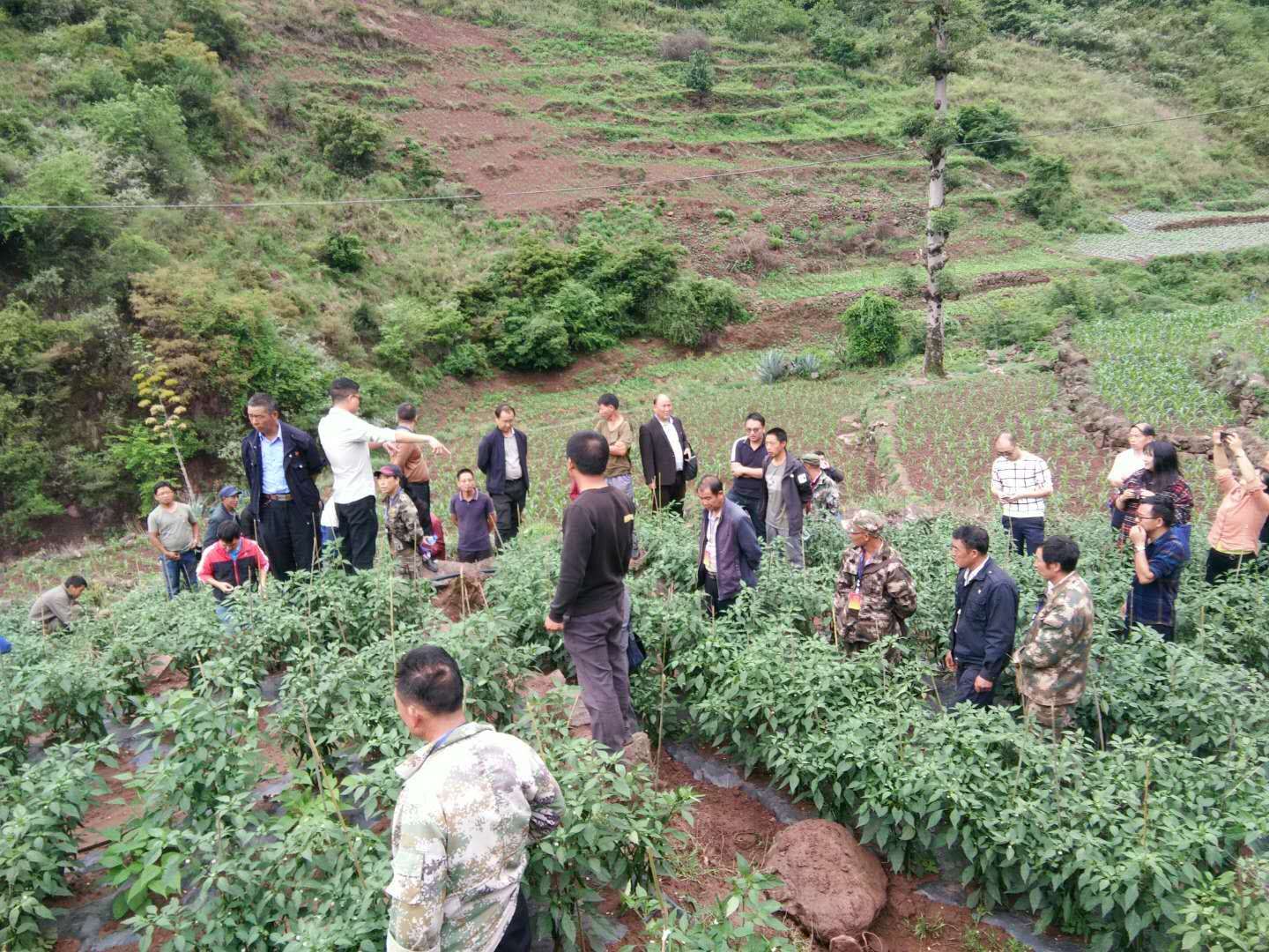 为提高群众辣椒种植技术,增强群众信心,2020年7月3日上午,环州乡组织乡党政班子成员、各村党总支书记、第一书记和部分乡人大代表到环州乡拉务村委会开展辣椒种植现场观摩活动。