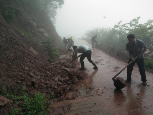 吝车大村党支部党员王林说:“本来我们这些地方的地形和土质就是这种,一下雨就会有土石滑落,如果一个都不管,那大家怎么出行?作为党员,做这些事情我们肯定是要义不容辞地,不然咋能体现党员的实干精神、奉献精神?”