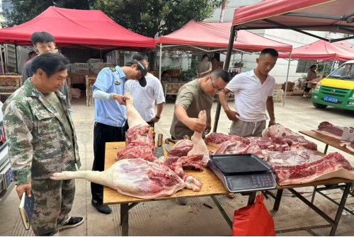 随后,工作人员聚焦肉类摊位开展重点监督。通过查看检验检疫标识、追溯产品来源,与商家面对面交流,详细询问近期猪价及宰杀时间等信息,全面掌握肉类产品流通环节的关键节点,严格遵循“小问题即时整改、大问题及时上报”原则,实现从生产到销售的全过程监管。