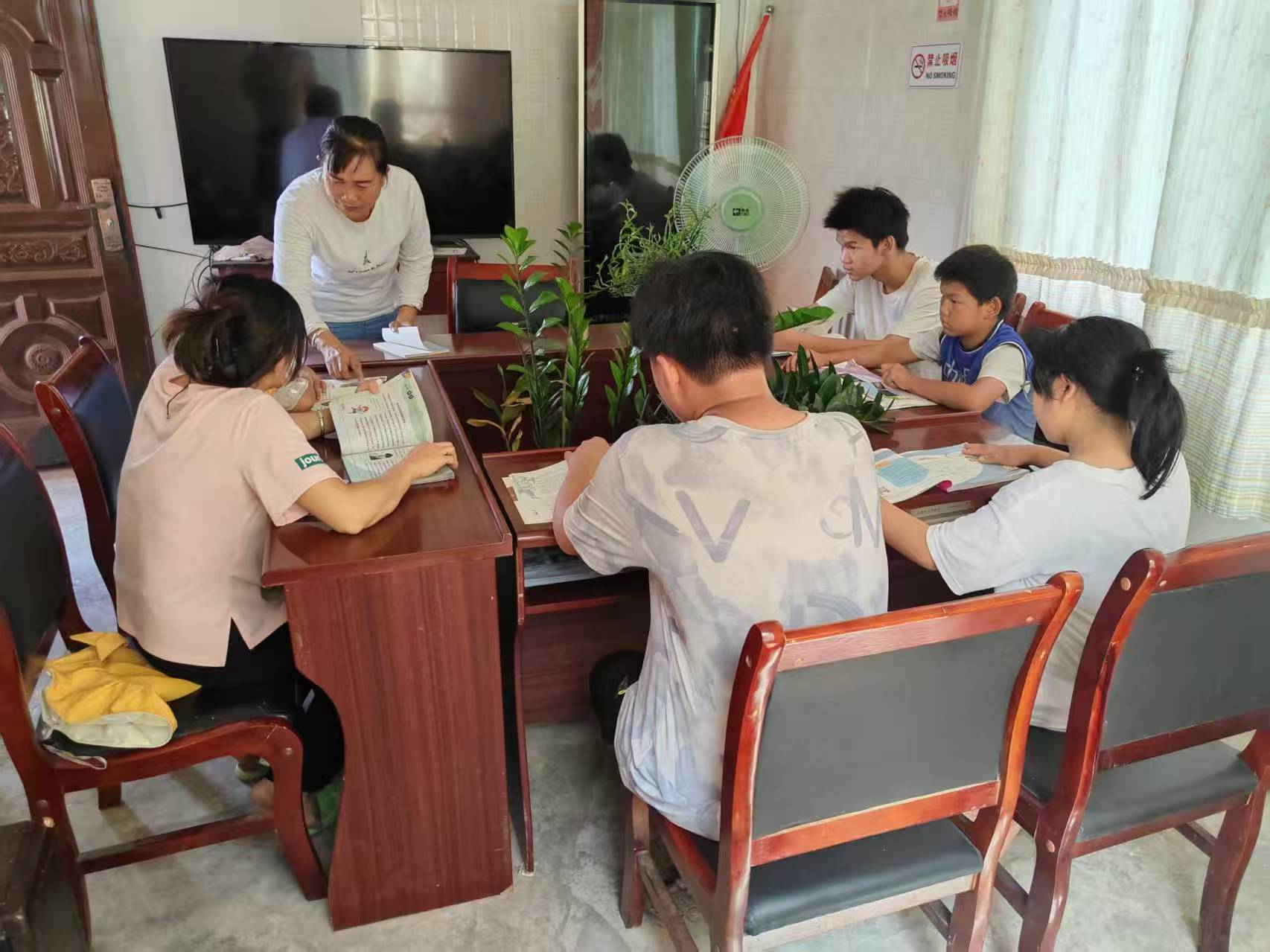 与此同时,所所卡村委会勐果村“青春相伴·‘益’起发光”公益小课堂也在如火如荼进行中。去年以来,勐果村依托农家书屋丰富的藏书资源和舒适的环境,在暑假返乡青年教师和大学生的大力支持下,精心打造了“青春相伴·‘益’起发光”公益小课堂,到今年已成功开办两期。服务对象主要是勐果村、小以南古村的中小学生和高中生,优先满足留守儿童需求。目前,小课堂共有4名教师,为14名学生提供课业指导服务。“我很喜欢这里,有许多小伙伴和我一起玩,有老师和大姐姐教我写作业,老师每天都会布置学习任务,小课堂让我学到好多东西。”学生杨兴燕开心地说。