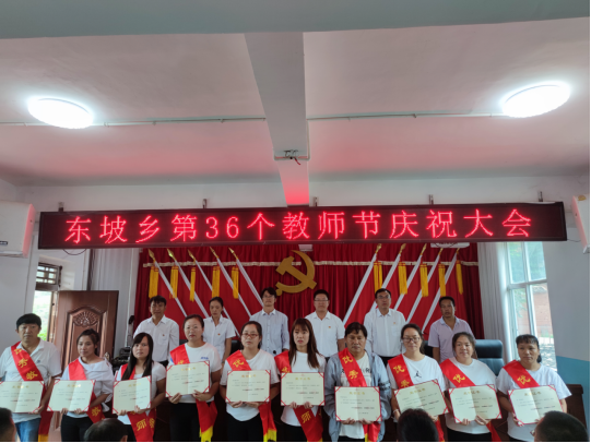 为表扬东坡乡教育工作中涌现出来的先进典型,激发全乡广大教育工作者立德树人、教书育人的使命感和责任感,营造全乡尊师重教的浓厚氛围,进一步推动东坡教育高质量发展。9月10日,东坡乡庆祝第36个教师节暨优秀教师表扬大会顺利召开。乡党政班子成员、东坡中学、东坡小学全体教师及受表彰的教职工共90余人参会。