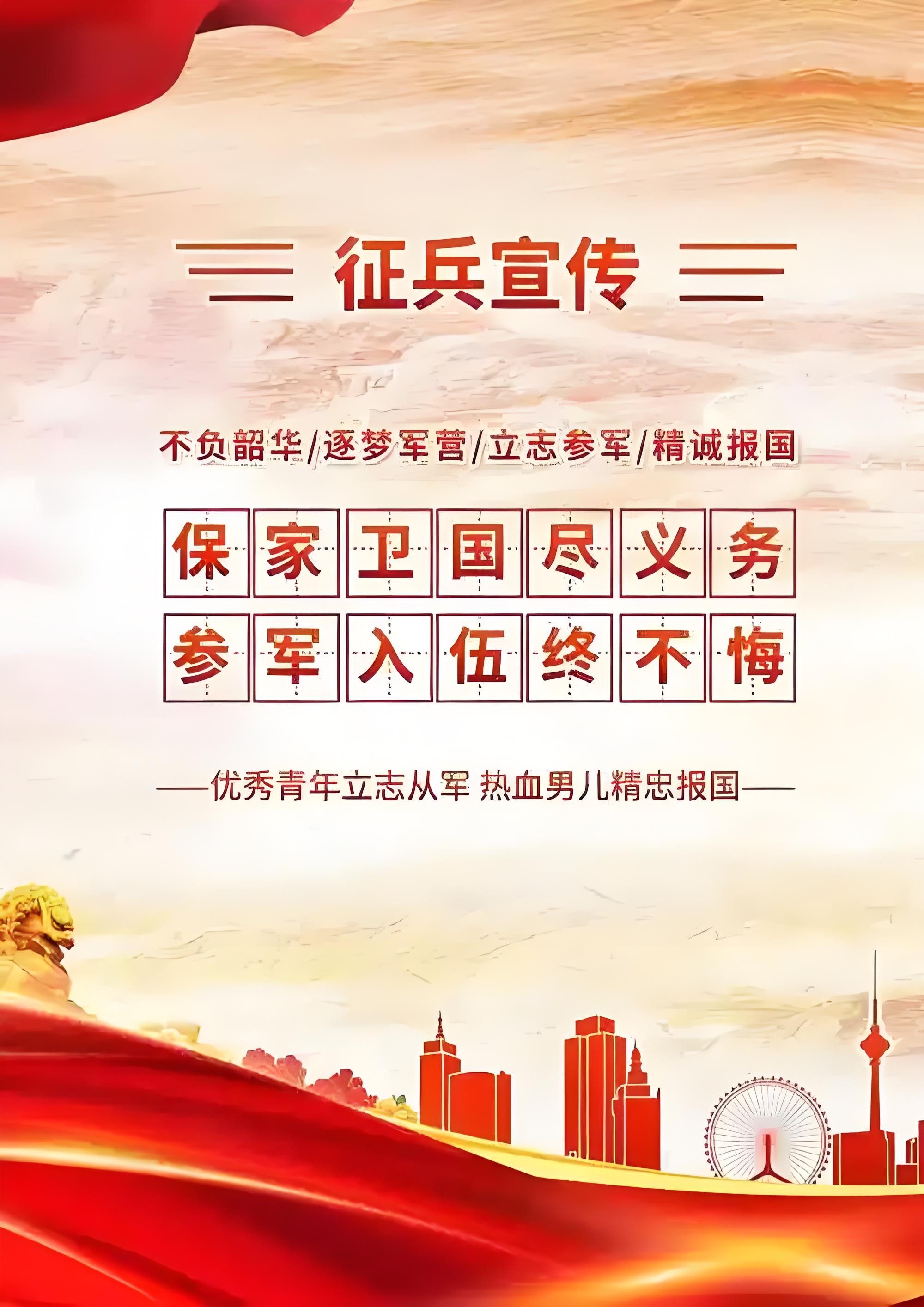 依法服兵役是我们每个公民应尽的光荣义务。希望广大适龄青年踊跃应征报名,接受祖国挑选,为实现“强军梦、强国梦”贡献力量。