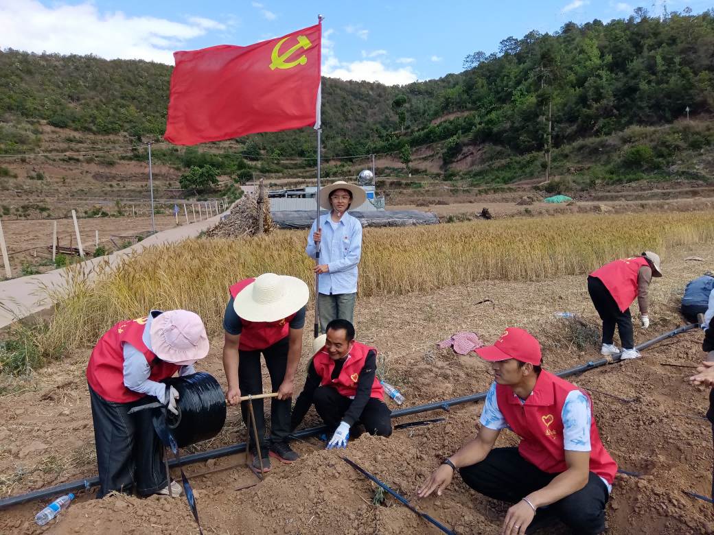 烈日炎炎,挡不住志愿者们为民服务的热情。活动现场,大家热情高涨,纷纷卷起衣袖、拿起锄头,“扎”进地里,“嚓嚓嚓”的挖地声此起彼伏,不一会工夫就平整了一大片,群众喜在脸上,志愿者们乐在心里。随后,党员干部们化身“春耕服务队”,撸起袖子、俯下身子,与烟农并肩劳作。放苗、浇水、施肥、覆膜……田间地头=团徽闪耀,鲜红的党旗、团旗在春风中高高飘扬,勾勒出一幅“党群同心战春耕”的生动画卷。