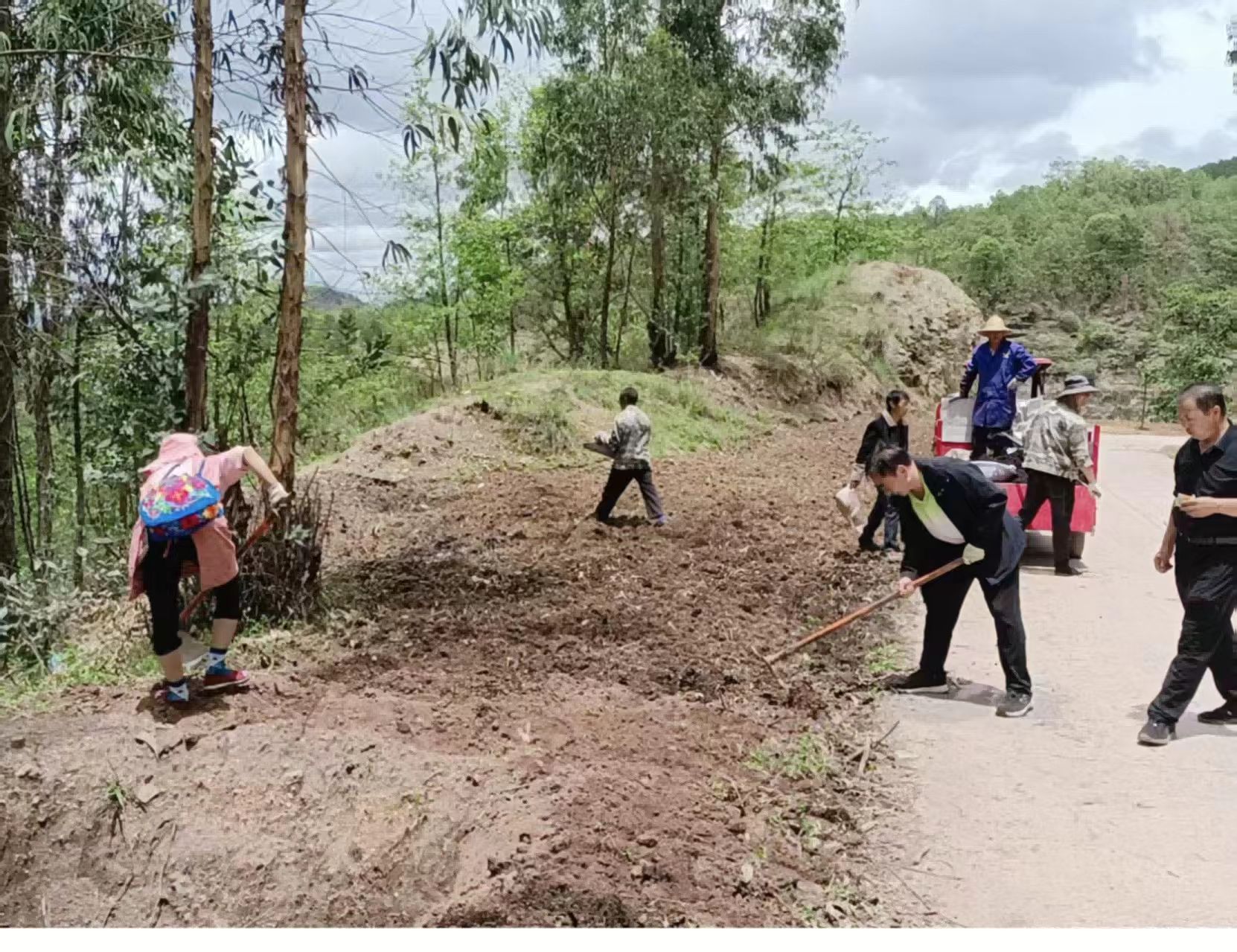 近日,己衣镇资亨村委会聚焦乡村环境持续美化提升,组织村两委班子成员、驻村工作队员、镇级工作队员及村民志愿者共30人参加,于大尖山至村委会道路沿线,开展了一场主题为“种植花草,美化环境”的志愿服务活动。本次活动共平整花卉种植带1700米,播种面积3400平方米。