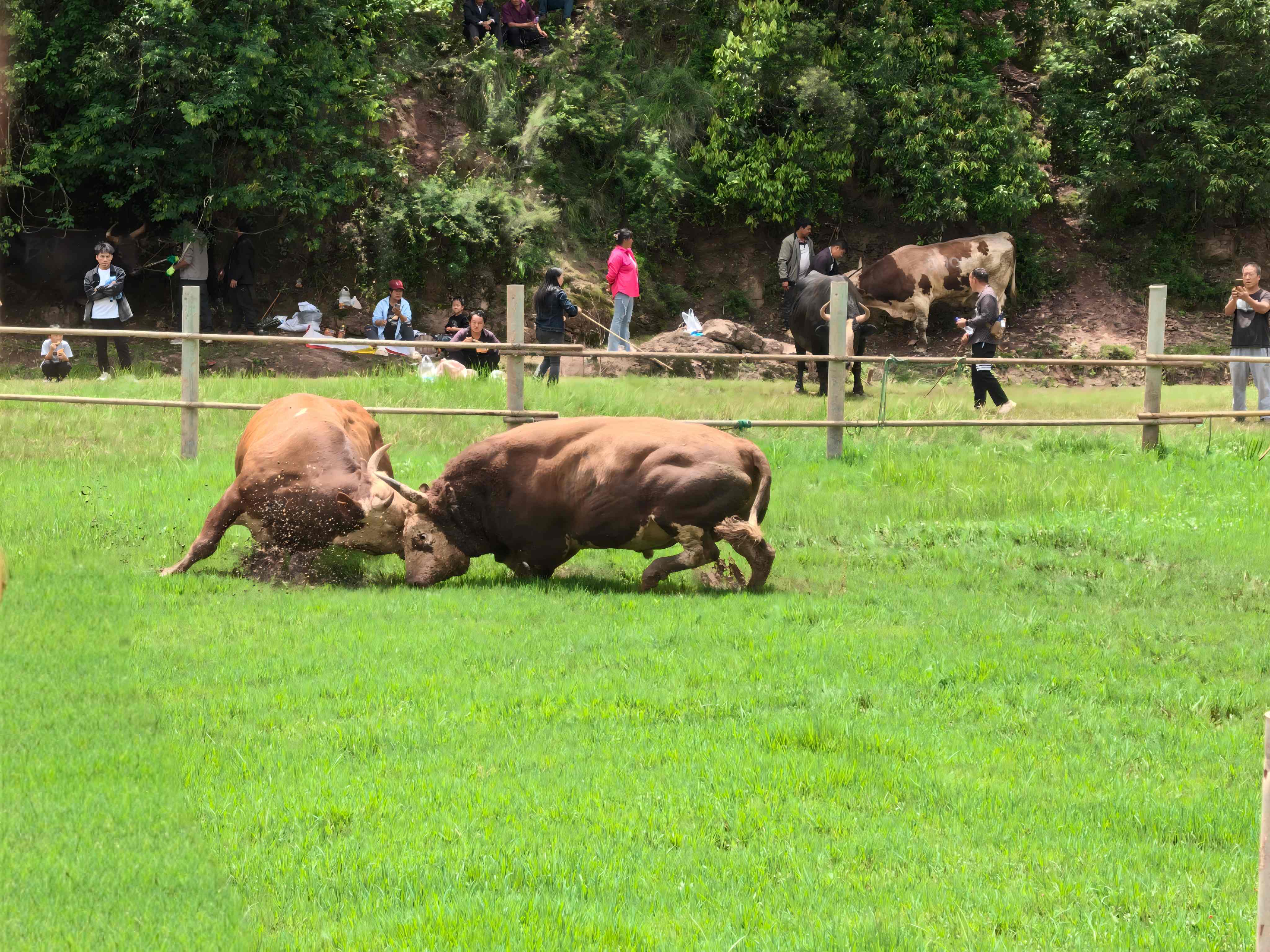 斗牛场里,两头壮硕的黄牛角力正酣,观众们呐喊助威,欢呼声此起彼伏。斗牛、斗羊、斗鸡、射弩、篮球比赛……这些传统体育竞技项目,一直是发窝乡群众的最爱。