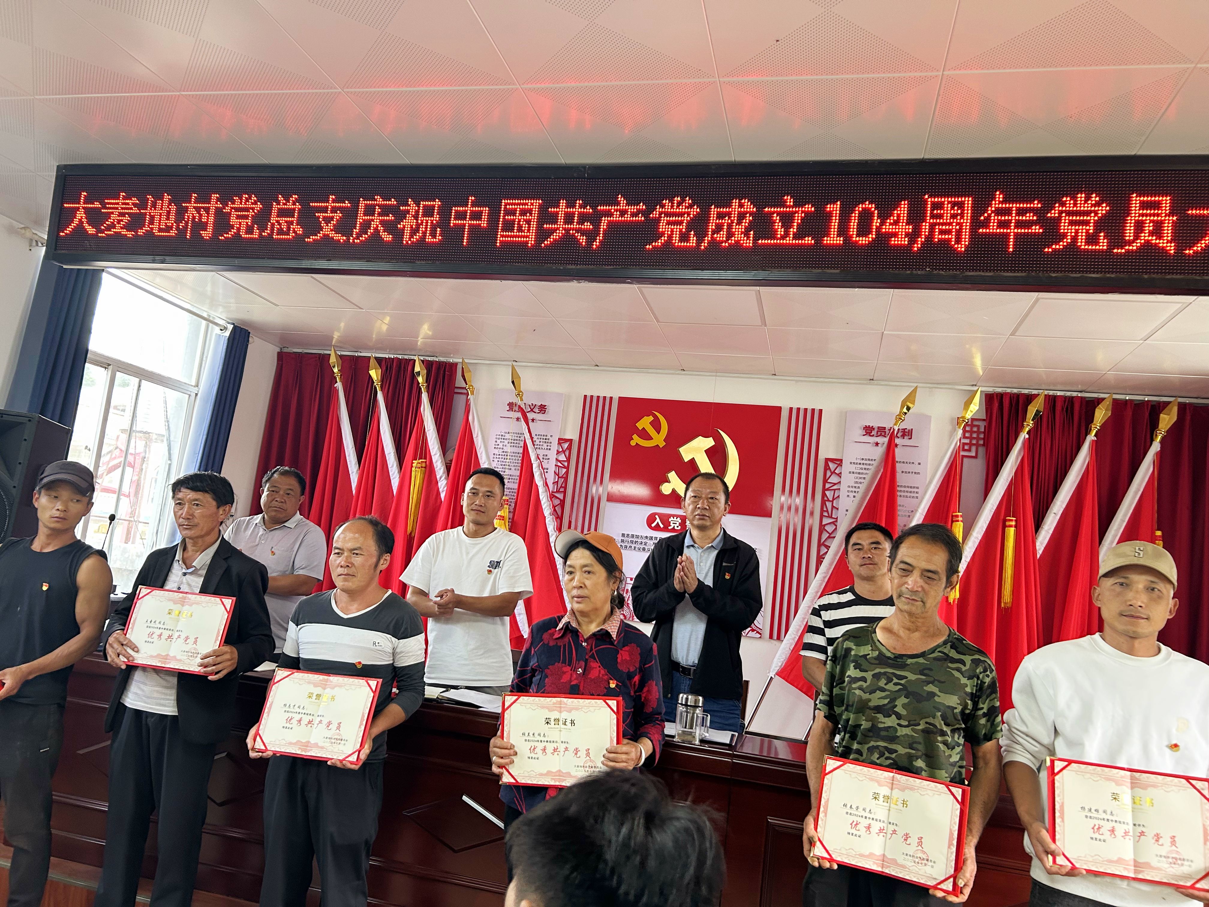 为庆祝中国共产党成立104周年,回顾党的光辉历程,弘扬党的优良传统,2025年6月27日,大麦地村党总支组织召开庆祝中国共产党成立104周年表彰大会,全体党员齐聚一堂,共庆党的生日。