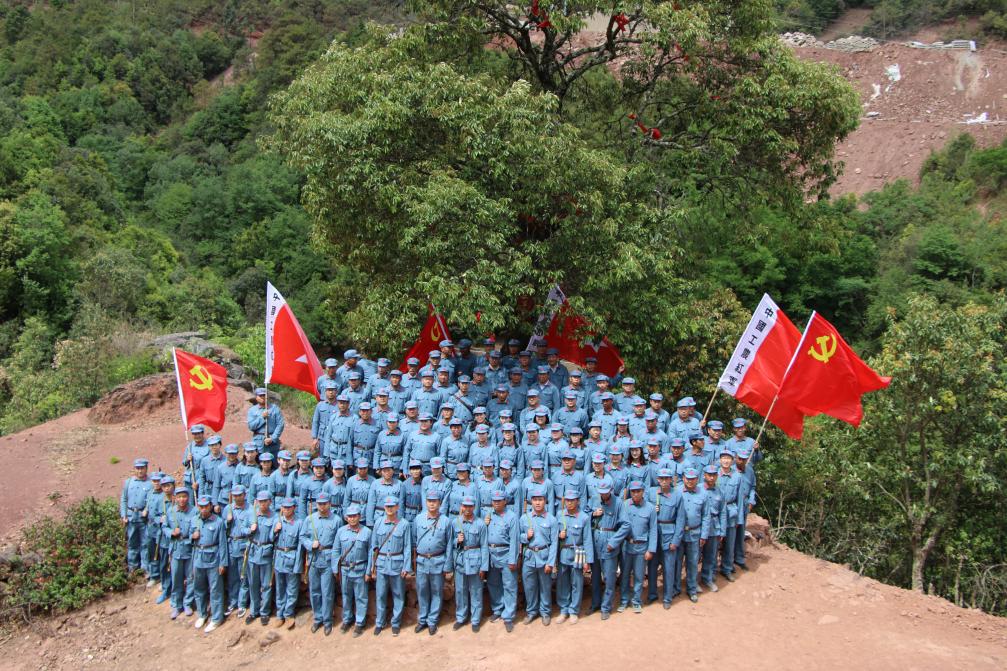 五月的木高古,绿荫如海,生机盎然。在镇党委的号召下,全镇干部职工、村“四职”和新一届驻村工作队员来到白路镇木高古党史党性教育基地开展了一次别开生面的党史学习教育。大家在基地的游客接待中心换上红军服,扛起“汉阳造”、背上手榴弹,整齐列队,在红三代讲解员的指挥和带领下,开始重走长征路现场体验教学活动。