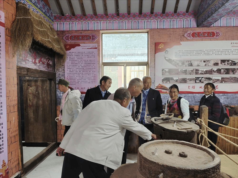 老木坝村村民给前来参观的文艺队介绍说:“2018年以来,先后争取1000多万元建设美丽宜居特色村寨,投入帮扶资金300万元开展村庄清洁和绿化行动,推进“美丽家园”建设。在省委组织部的帮助下,村民们通力协作收集诸多以前的生产生活用具和傈僳族传统服饰在这里展出,让乡亲们留住乡愁。”