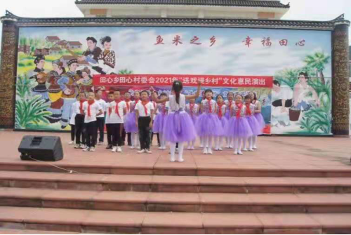 连日来,田心乡党委、乡人民政府高度重视、统筹部署,乡文化和旅游广播电视体育服务中心、田心小学密切配合、精心策划,高质量编排了舞蹈《我和我的祖国》、《广场时装秀》、《玉龙欢歌》、《月亮女神》、《热爱共产党》,合唱《我的祖国》、《南泥湾》、《同一首歌》、《红星闪闪》、《我和我的祖国》、《映山红》、《团结就是力量》,经典诵读《一代伟人毛泽东》,独唱《童心向党》等14个优秀节目。