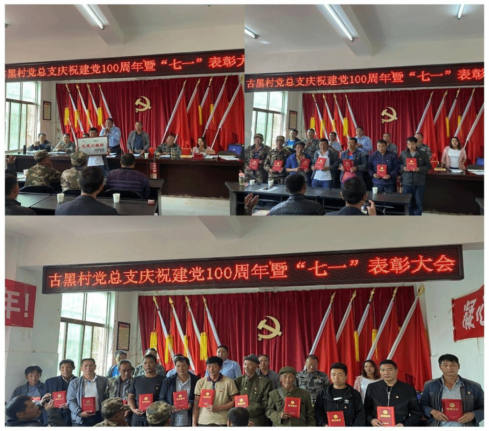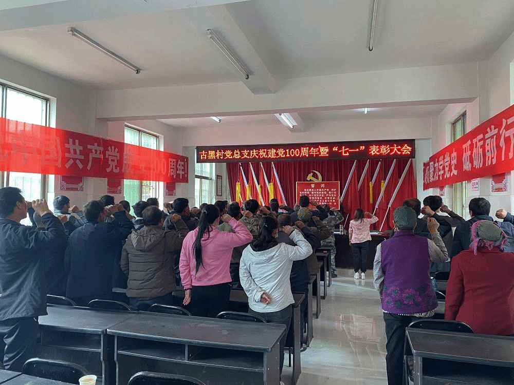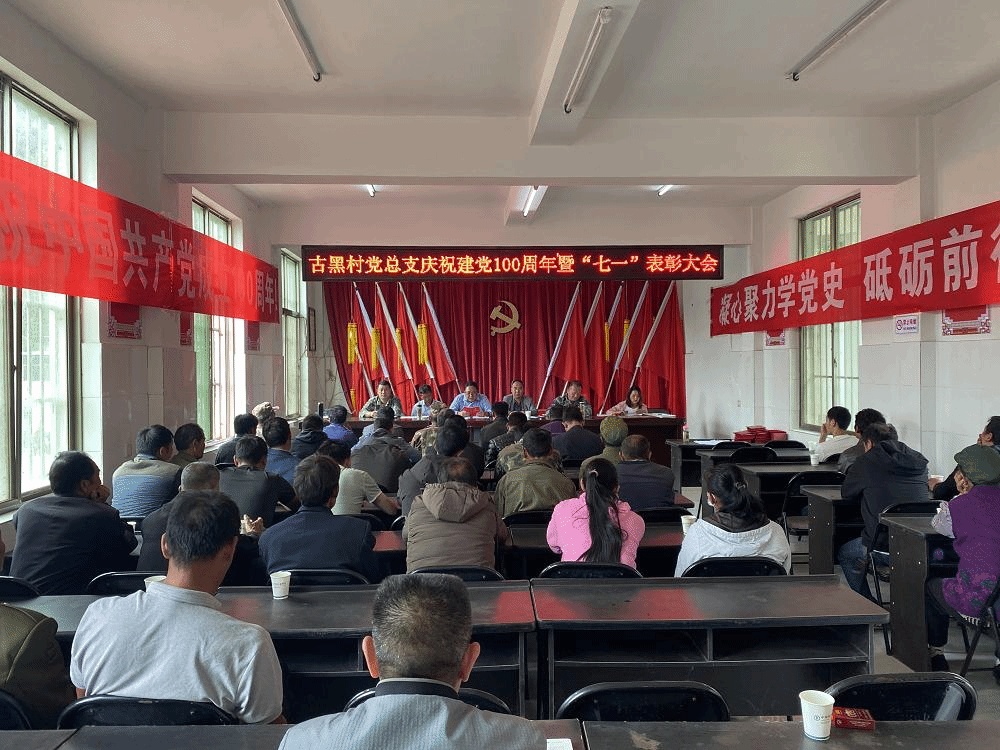 为庆祝中国共产党成立100周年,进一步贯彻落实习近平新时代中国特色社会主义思想,深入学习党的十九大和十九届二中、三中、四中、五中全会精神,缅怀党的光辉历史,讴歌党的丰功伟绩,传承党的优良传统,发扬党的优良作风,7月1日下午,古黑村党总支召开庆祝建党100周年暨“七一”表彰大会。