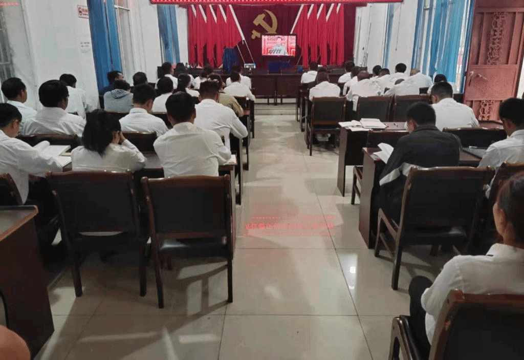 (当天安门广场上升旗仪式开始时,环州乡全体干部职工自觉起立致敬,同声齐唱国歌)