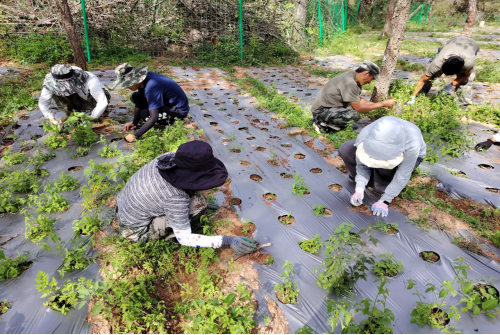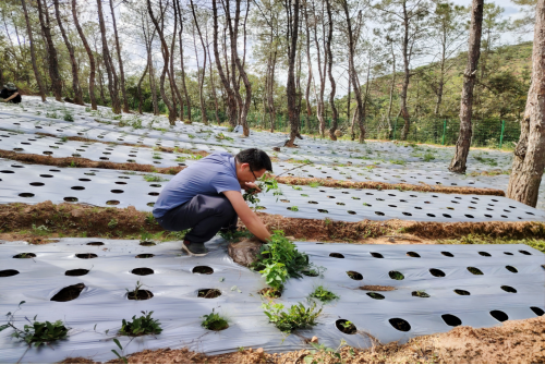 活动现场,乡农业农村发展服务中心农技员现场讲解当归苗期管护知识,表示林下种植中药材对环境要求高,及时除草既能避免杂草争夺养分,又能保持土壤湿度,为幼苗生长创造良好条件,同时提醒大家注意区分幼苗与杂草,避免误拔。党员干部们分工明确,两人一组、三人一队,有的蹲在垄沟边细心拔除杂草,避免其与当归苗争夺养分;有的轻扶歪斜的幼苗,小心翼翼为其培土固根;还有的相互配合检查地膜覆盖情况,确保保墒透气效果。大家干劲十足,田间地头一派忙碌而有序的景象。
