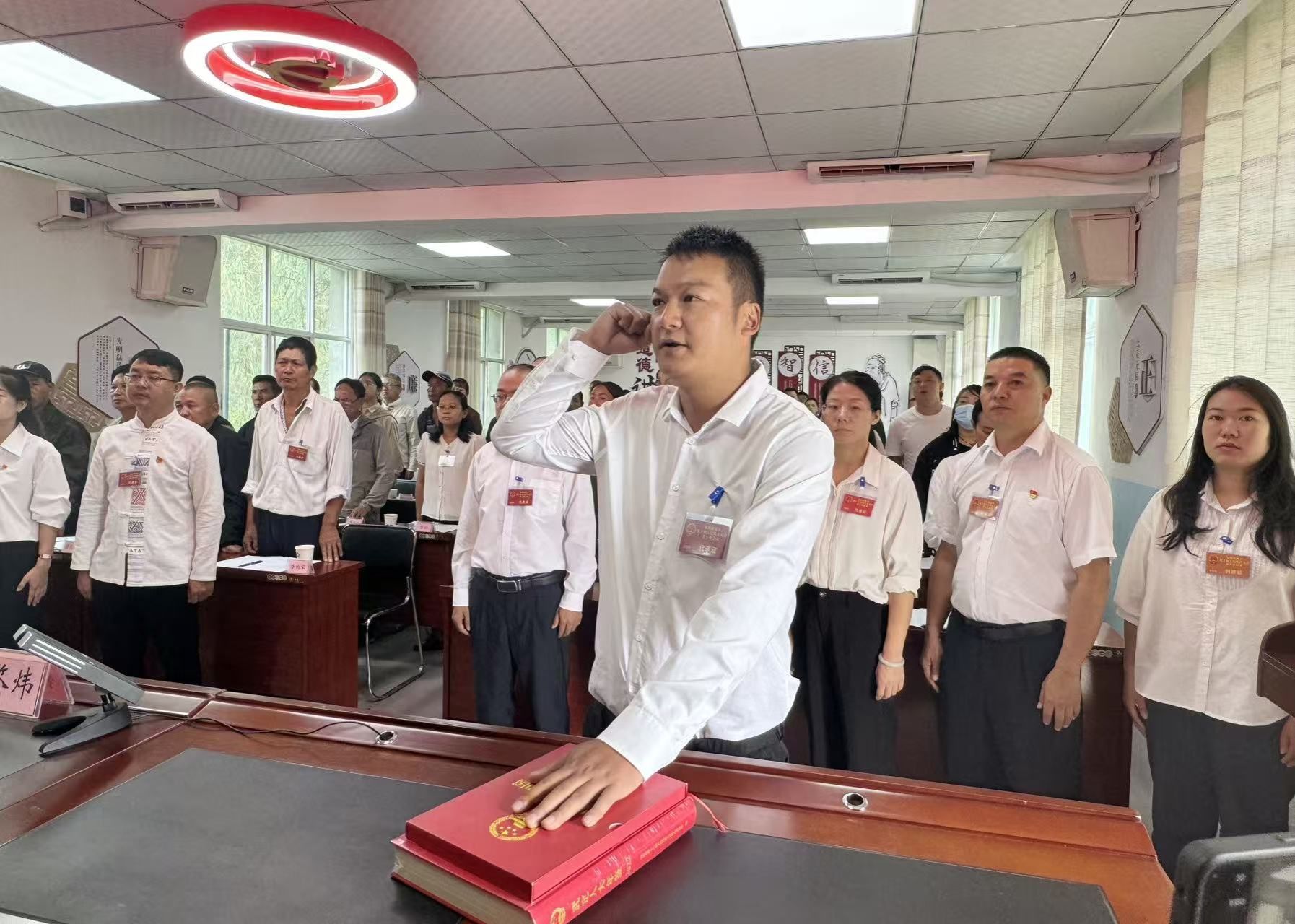 大会举行了庄严的宪法宣誓仪式,新当选的乡人大主席钱鉴炜进行宪法宣誓。