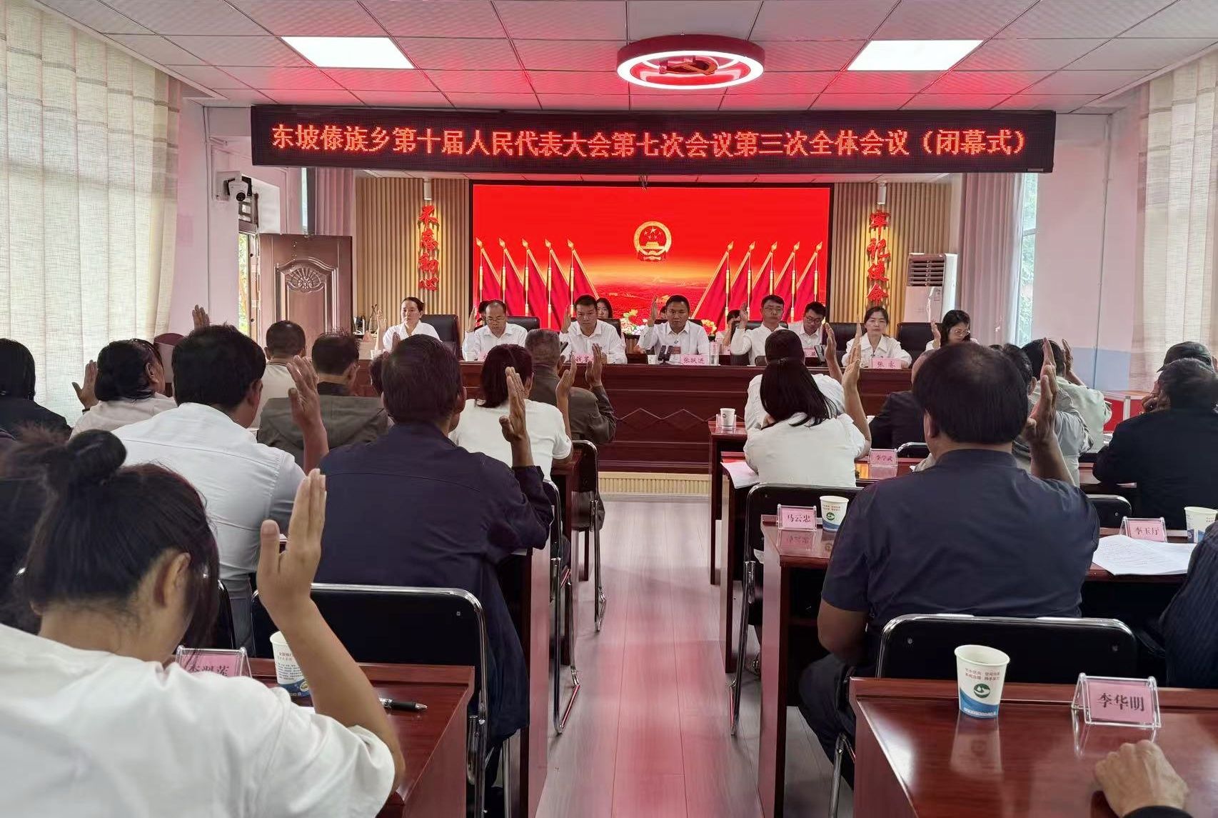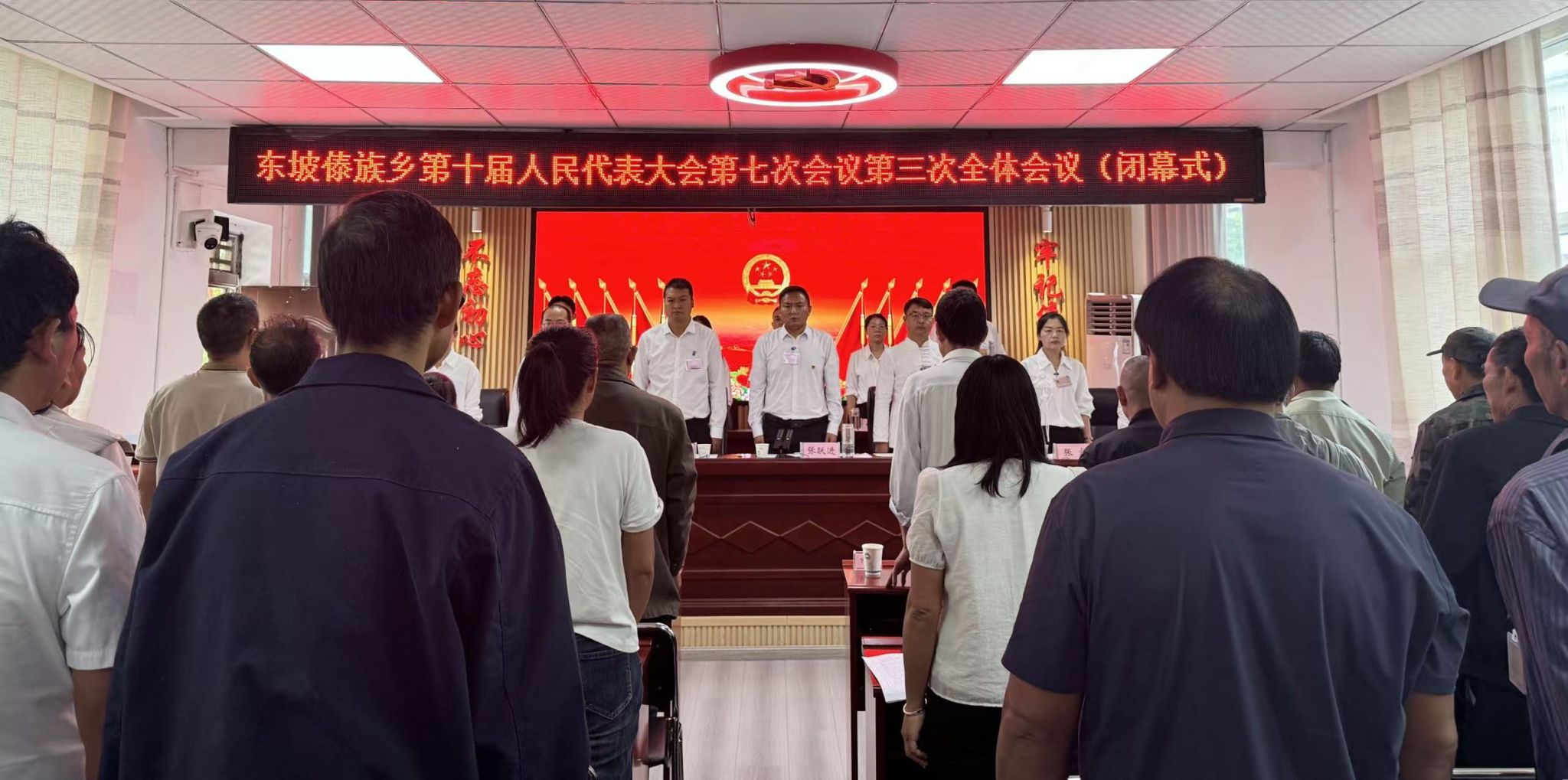 2025年8月22日,东坡傣族乡第十届人民代表大会第七次会议圆满完成各项议程和任务,在庄严的国歌声中胜利闭幕。大会应到代表54名,实到代表43名,符合法定人数。