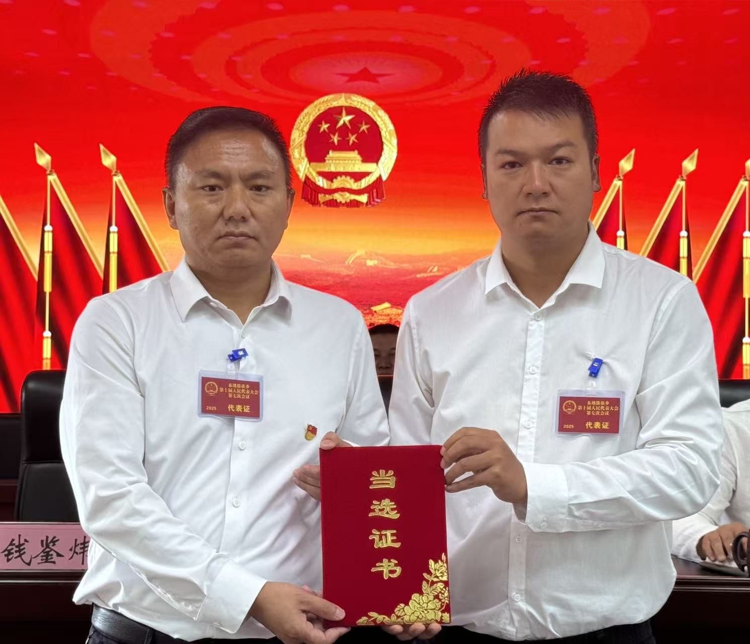 大会通过无记名投票方式,全票选举钱鉴炜同志为东坡傣族乡第十届人大主席团主席,乡党委书记张跃进为新当选的乡人大主席颁发当选证书。