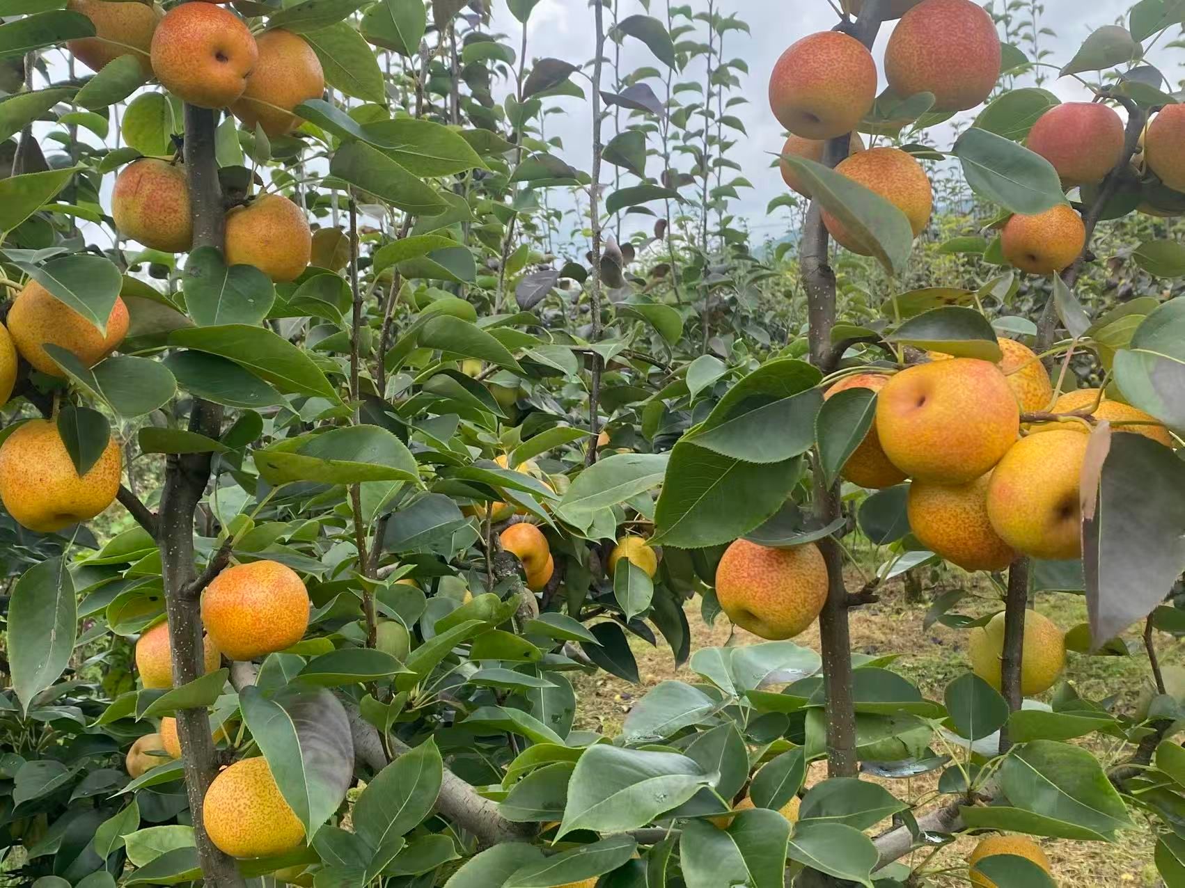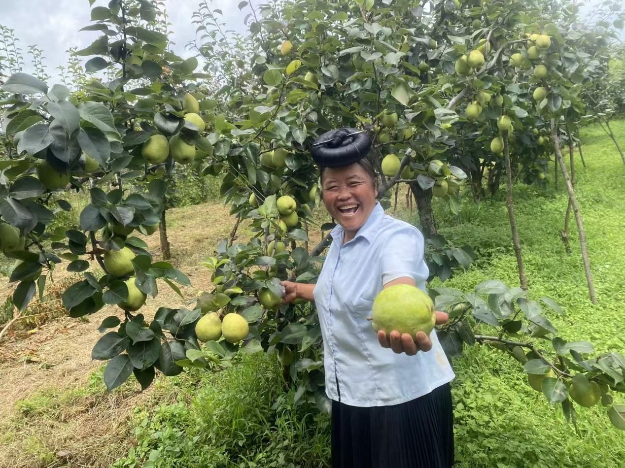 管好一棵“金梨树”,卖好一个“致富果”,实现一个“致富梦”,龙秀花家的果园里,一颗颗饱满成熟的金花梨、小红梨、云南红沉甸甸的挂满枝头,果皮鲜亮薄而透明,果肉细腻,汁水丰富,一个个红绿相间的梨果迎来了丰收时节。