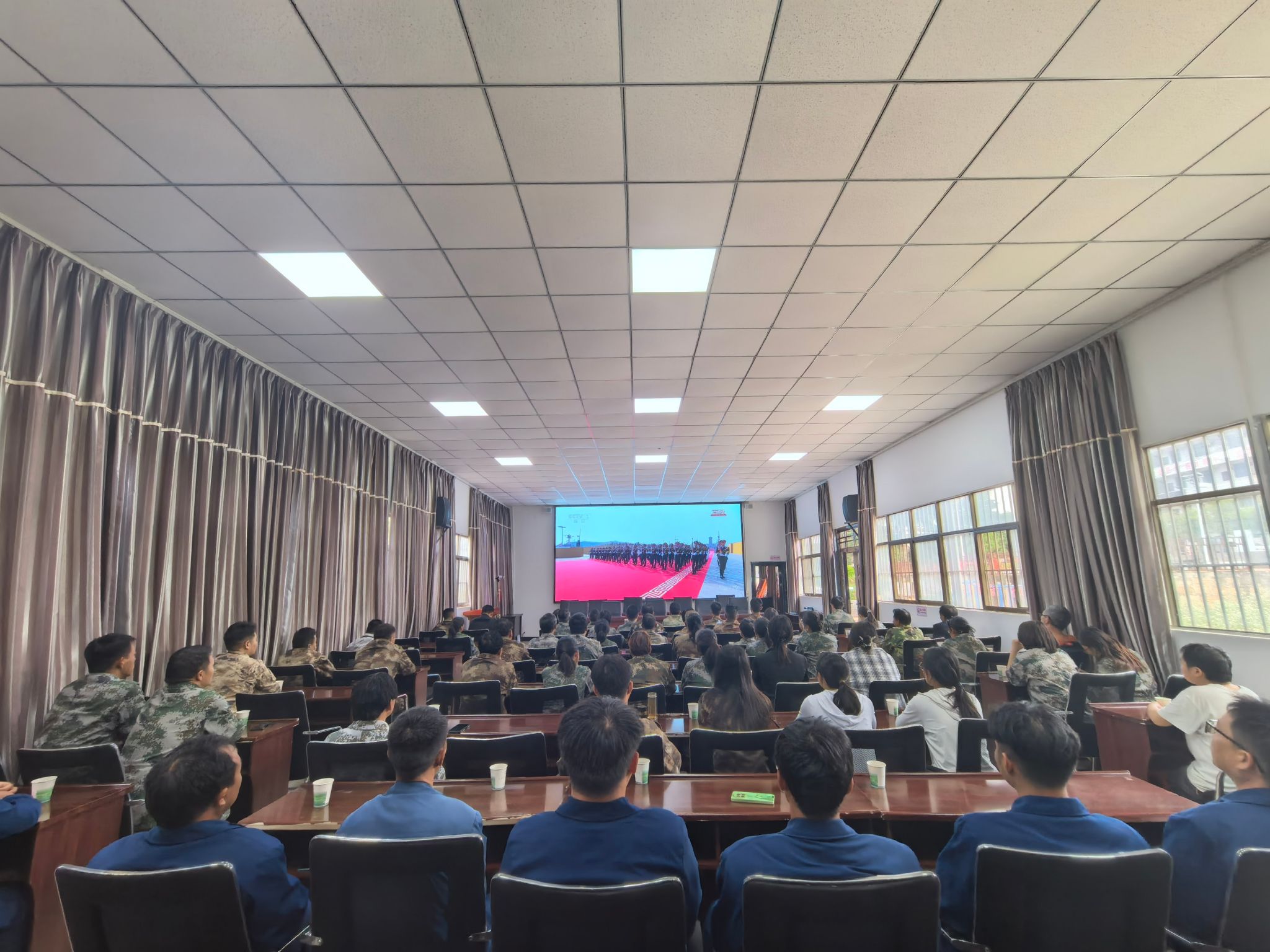 2025年9月3日,插甸镇组织镇村干部、党员、团员、群众共计300余人集中观看纪念中国人民抗日战争暨世界反法西斯战争胜利80周年大会,共同见证这一庄严而盛大的时刻,缅怀先辈英勇事迹,传承伟大抗战精神,凝聚奋进力量。