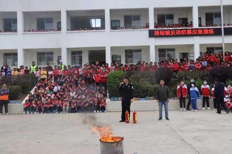 10月28日下午3时,插甸镇党委、政府组织相关职能部门在插甸希望小学开展插甸镇反恐防暴及消防应急演练,政府主要领导、各所(办、中心)负责人、中小学全体师生、加油站等重点单位负责人共计1500余人参与此次演练活动。