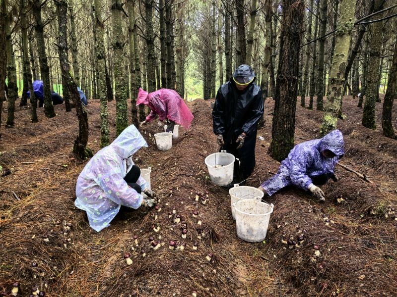 “我们6月中旬开始种植,没想到短短2个月就出菇了,这已经是我们采收的第4茬了,估计可以采到11月底。今年雨水充足,昨天刚采过,今天又冒出来一批,平均每天可采鲜菇1000公斤。”团碑村党总支书记张蔓华激动地说:“一亩林地一季大概能采摘2000公斤鲜菇,按照目前8至10元/公斤的收购价,预计今年可实现产值100余万元。