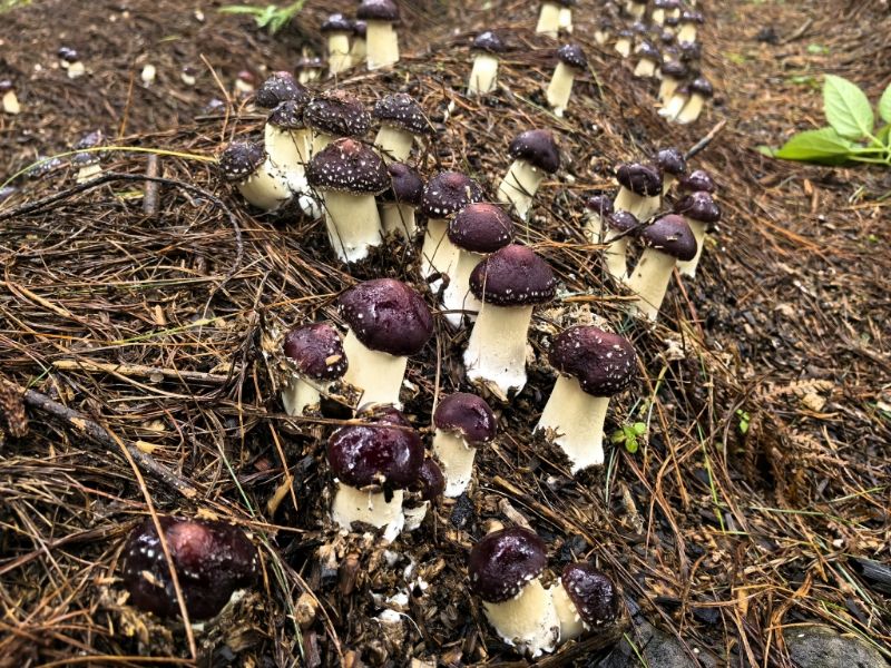 赤松茸又名大球盖菇,是一种珍稀食用菌,成品鲜菇色泽艳丽、食味清香、营养丰富,享有“素中之荤”“菌中之王”的美誉。“赤松茸的最佳生长温度是8—20℃,这里非常适合,松林挡大风又通风,氧气充足,菌丝生长旺盛;而树林中的散射光,可以很好地满足赤松茸对光的需求;加之林下环境比较稳定,略微潮湿,长出来的菌菇品质就非常好。像这种,搭配点酱油和芥末就可以直接生吃,味道很鲜美。”李孟芩笑着介绍道。