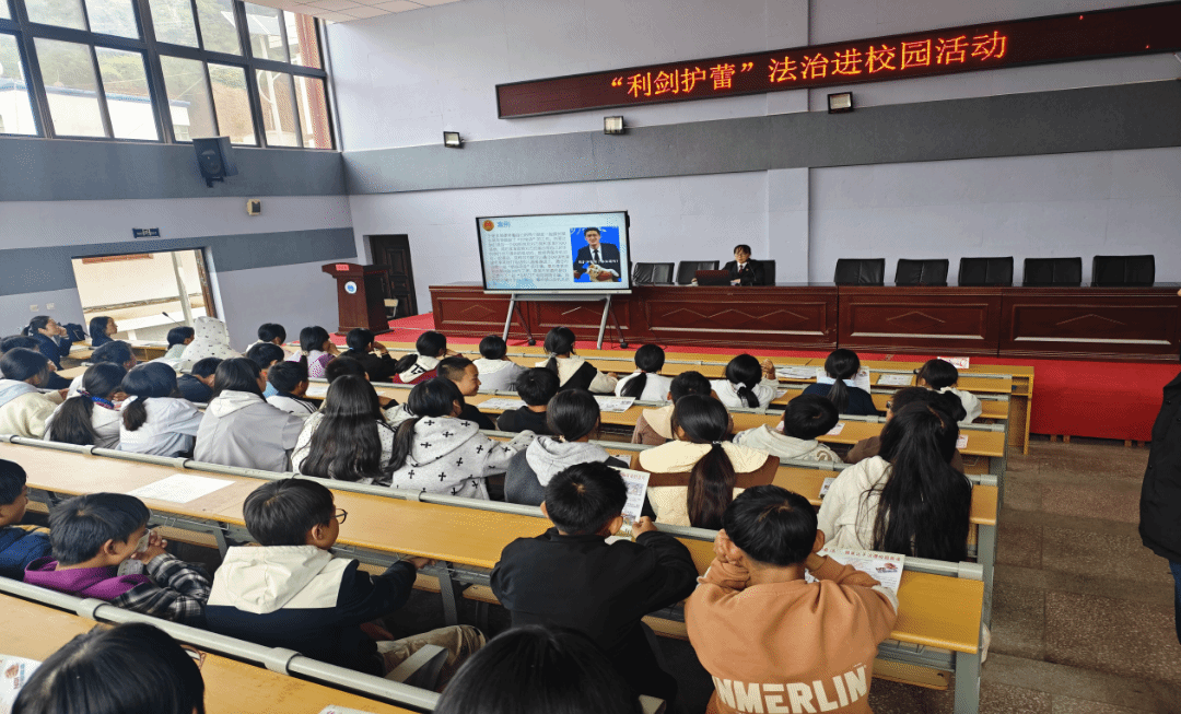 为切实加强青少年法治教育,筑牢校园安全防线,2025年10月24日,武定县人民检察院张爱琴检察官及其同事一行莅临我校,为全校师生带来了一场以“预防未成年人犯罪,不因无知入歧途”为主题的法治专题讲座。