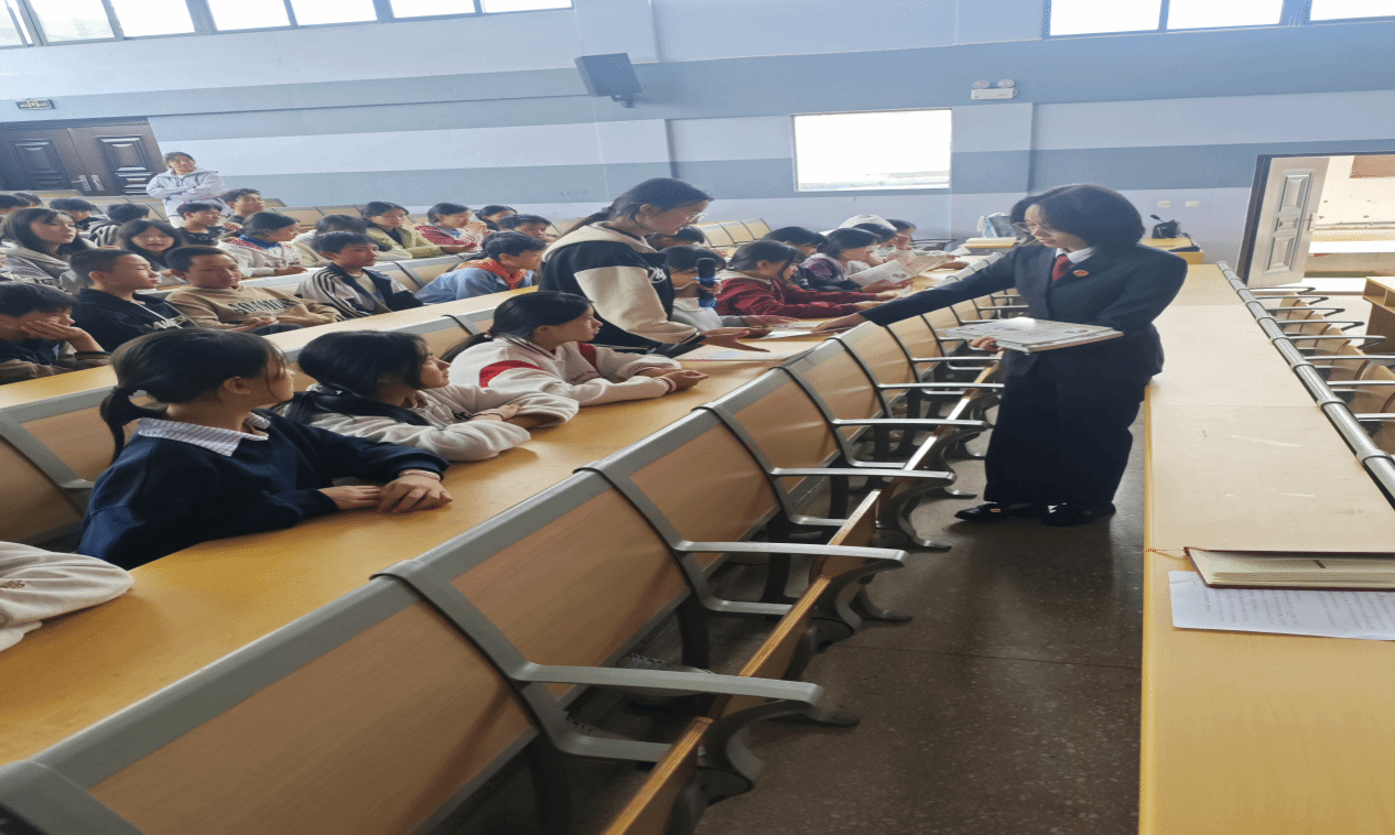 在备受期待的互动环节中,张检察官设计了别开生面的“法律知识快问快答”。随着贴近学生生活的问题抛出,同学们争相举手,踊跃应答。每道题目后,张检察官都会进行专业点评和延伸讲解,使法律知识在轻松愉快的氛围中深入人心。答对问题的同学还获得了检察院精心准备的法律知识书签、法治主题笔记本等小礼品,将现场气氛推向高潮。