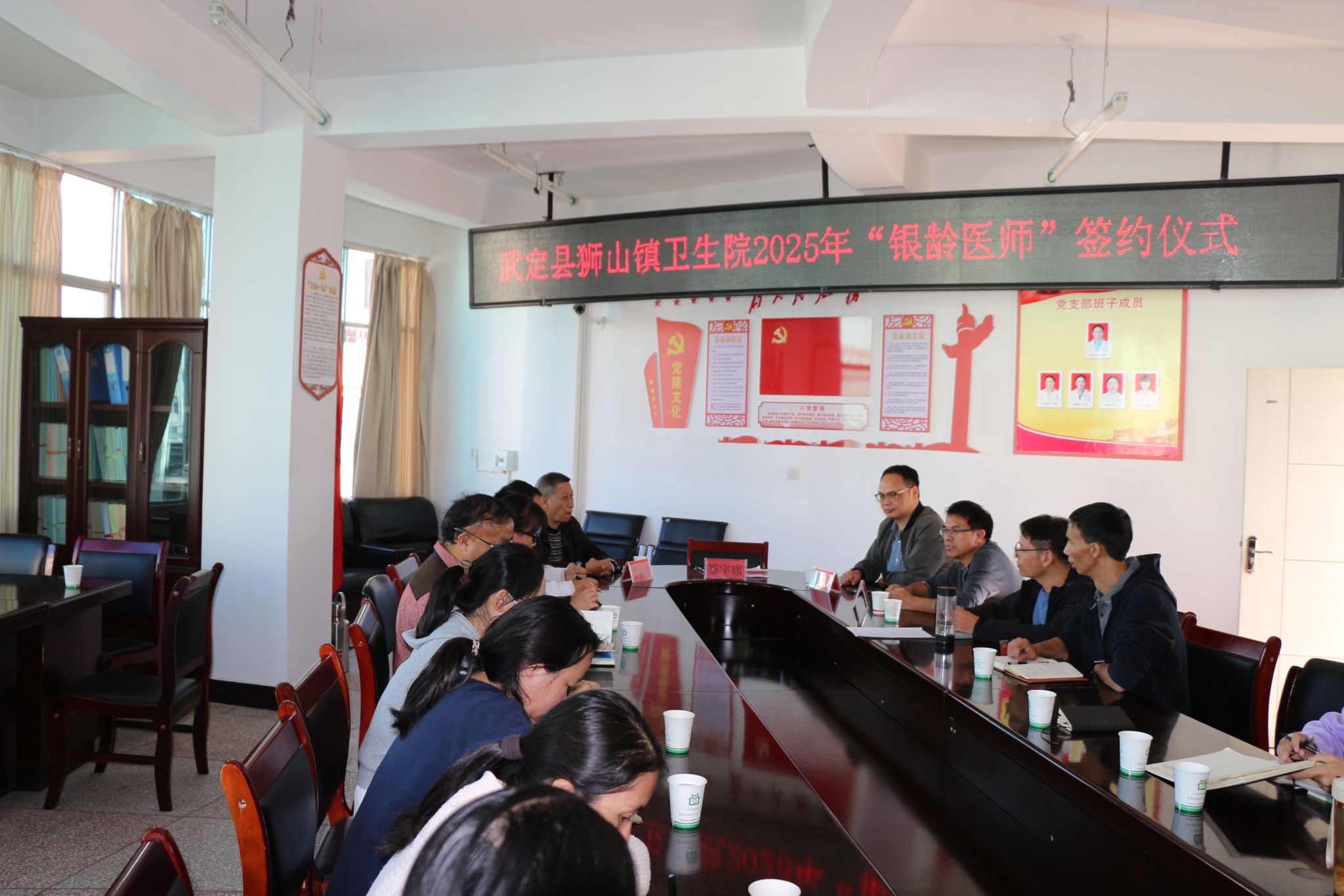 武定县县域医共体总院长、狮山分院执行院长、签约医师及卫生院各科主任出席仪式。武定县县域医共体总院长在致辞中指出,“银龄医师”是医疗卫生领域的宝贵财富,此次与“银龄医师”团队签约,是破解基层“引才难、留才难”、提升诊疗水平的关键举措。卫生院将以此次合作为契机,依托专家团队的技术优势,在临床带教、学科建设等方面深度联动,让群众在家门口享受更优质的医疗服务。