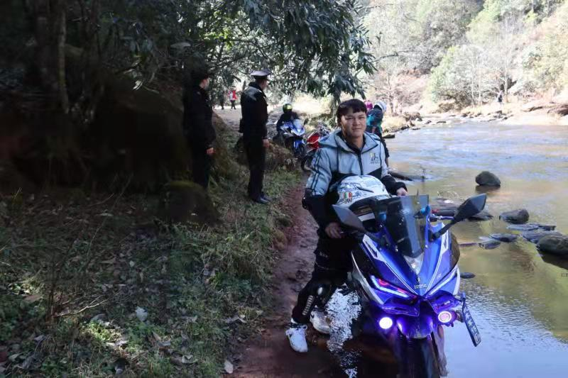 景区的“顽固少年”。春节期间,水城河风景区游玩的群众较多,为保障景区路段道路畅通、治安环境稳定,值班民警加强巡逻值守,提高见警率,增添群众的安全感。来到景区民警首先告知景区工作人员按要求扫健康码、量体温、引导车辆规范停车,再到景区内巡逻提醒群众注意安全,发现悬崖边的警示带被损坏及时将其修复,进一步强化安全防范。在巡逻期间,民警很远就听到“响管”摩托车的声音,顺着声音找去发现三辆摩托车正在水城河里飙车嬉戏,这样的行为不仅安全隐患较大,还影响到周围游玩群众的心情,破坏节日祥和的氛围,民警随即要求驾驶员将车挪至安全的地方并出示相关证件,经核实三位均为未成年人无证驾驶,其中一名“顽固少年”龙某极不配合,试图驾车强行逃走,经过民警的警告和教育,最终三位少年认识到了错误并配合处理。