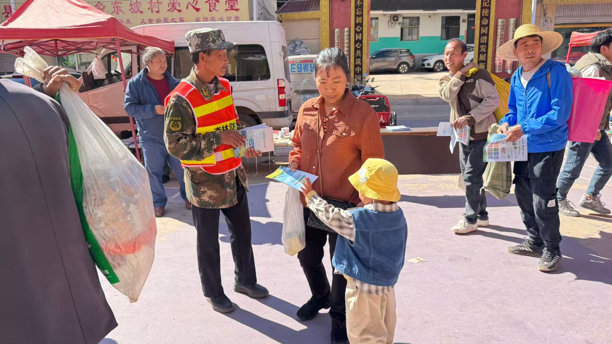 宣传人员利用集镇赶集日人流密集的有利时机,在街道旁设置宣传台,悬挂“森林防火常年抓,保护森林靠大家”横幅,吸引过往群众驻足。工作人员向赶集群众及沿街商铺经营者发放《武定县森林草原防灭火安全知识宣传手册》及“森林防火重于泰山”宣传单等资料,并结合当地方言,围绕防火期核心要求展开讲解。从“严禁携带火种进山”“禁止在林区吸烟”等基本禁忌入手,把专业知识转化为群众听得懂、记得住的“家常话”。