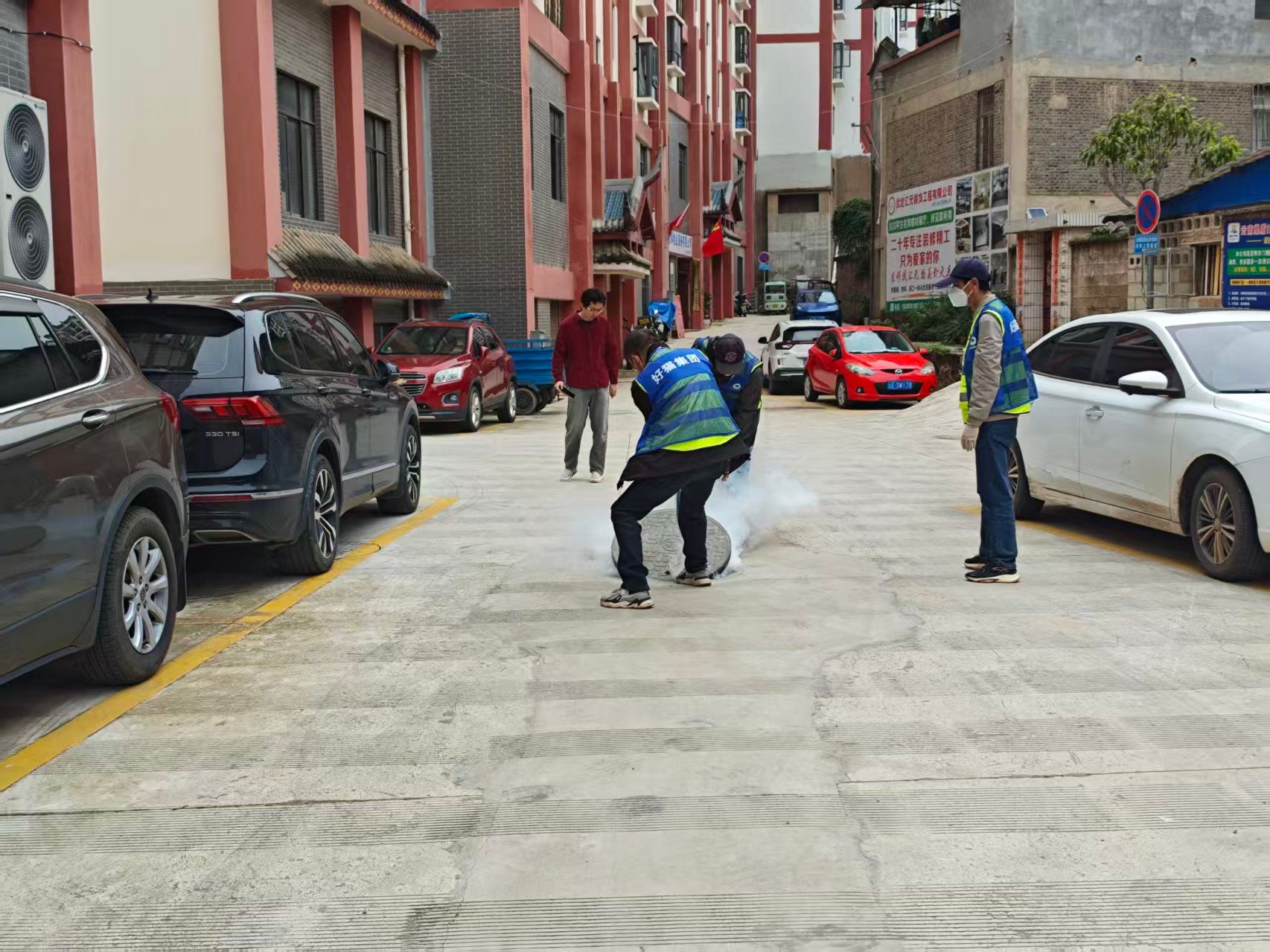 本次行动由社区党总支书记杨兴立统一部署,集结了社区工作人员、党员干部、志愿者及保洁人员共二十余人,形成整治合力。队伍重点对社区公园、公共绿化带、楼道及街道污水管道等区域进行了集中清理,包括清割杂草、排查污水管道,并向居民进行宣传,不随意丢弃垃圾,引导大家养成良好的卫生习惯,共同维护社区环境。经社区积极与县卫健部门协调,本次行动得到了县疾控中心的大力支持。中心派出专业技术人员,携带专业消杀设备与药品,深入社区各区域,科学、规范地开展了毒饵投放和蚊蝇消杀工作,显著降低了“四害”密度,为行动提供了专业保障。