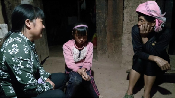 在潘丽美家,与其家长的交谈中得知家长其实是很希望孩子去上学的,但是她自己觉得自身成绩不好,所以不想去读书了,家长怎么劝都不管用。在得知此情况后,石腊它中心小学校长冯刚说:“孩子现在还小,心智还不成熟,你们家长一定要多劝导,争取让她回校多学点知识,这样对她以后的人生道路也会大有帮助。”