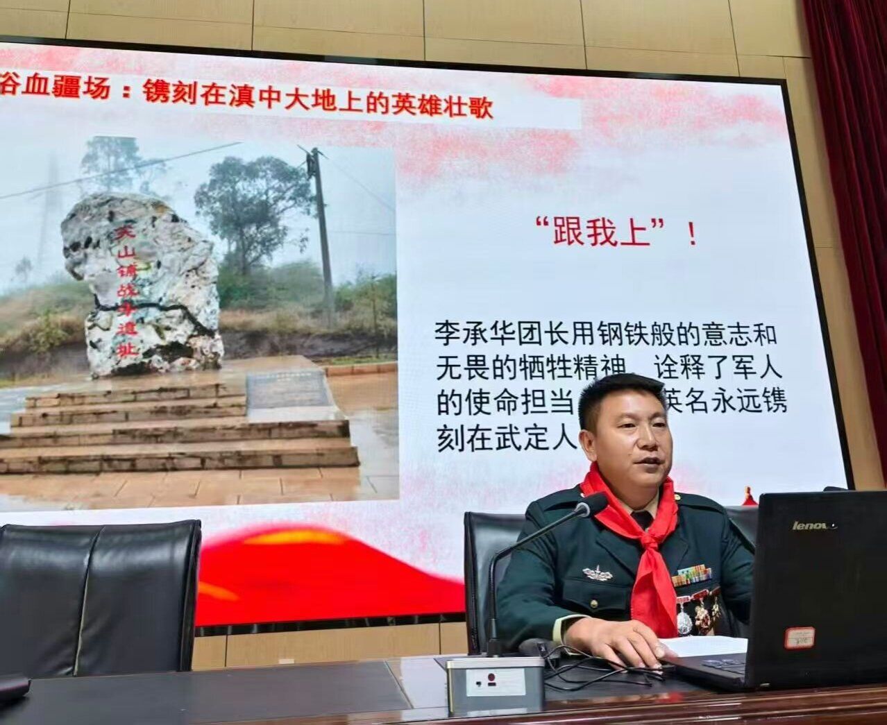 辅导员还讲述了尖山铺战斗中李承华团长、武定籍张正光烈士等英雄事迹。这些为了民族独立和人民解放英勇献身的先辈,以热血和生命谱写了一曲曲壮丽史诗。他们的事迹深深镌刻在武定的土地上,成为这座城市永恒的精神丰碑。同学们凝神聆听,仿佛置身于硝烟弥漫的战场,目睹先辈们奋勇冲锋的身影,感受他们坚如磐石的信念与视死如归的勇气,现场不时暴发出热烈掌声。