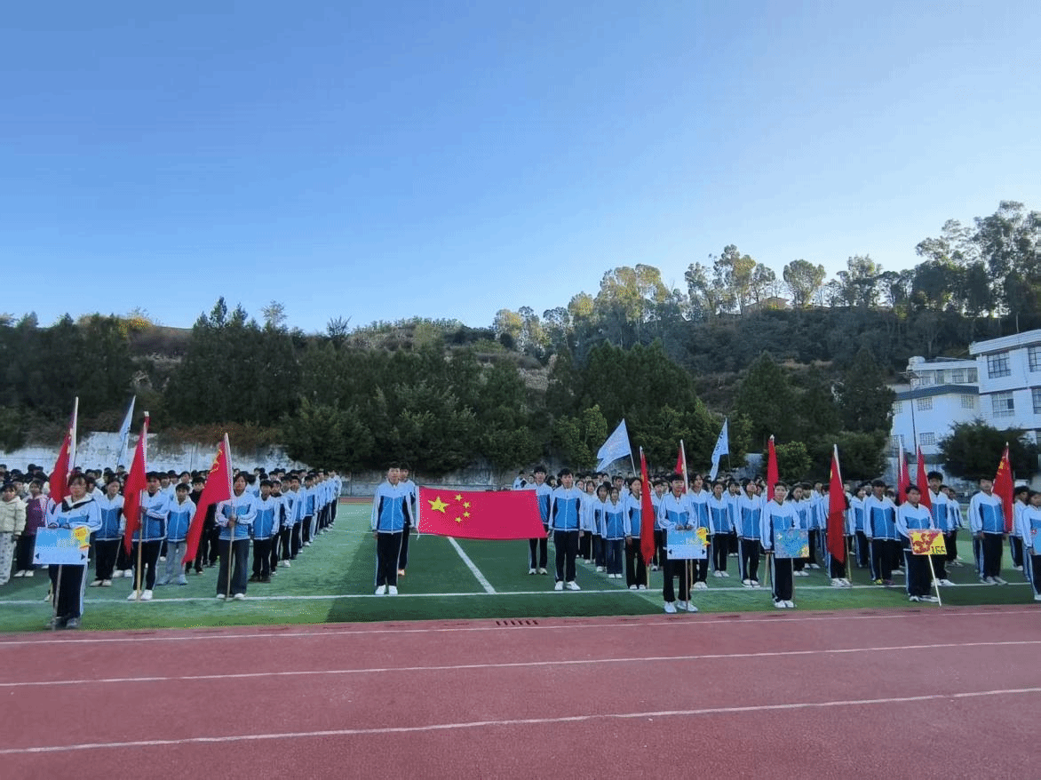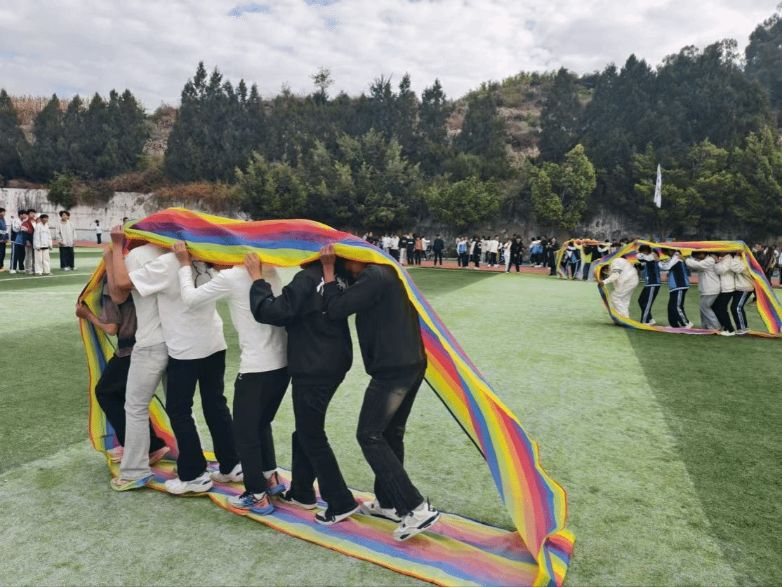 运动会当日,操场彩旗招展,全校师生共赴这场青春运动之约。开幕式上,各班方阵身着统一服饰,迈着整齐步伐、喊着嘹亮口号走过主席台,创意队形与昂扬面貌尽显少年蓬勃朝气。班级团体赛中,篮球操、广播操动作利落规范,三分钟跳绳银绳翻飞如弧,拔河赛场热血沸腾,队员奋力相持,拉拉队呐喊声震全场。趣味斗鸡活动热闹开赛,选手单脚角逐,灵活攻防引得欢呼不断。学生个人项目里,球类、短跑、仰卧起坐等赛事中,学子们拼尽全力突破自我。教师组拔河、手球、定点投篮等比赛同样亮眼,以行动为学生树立榜样,凝聚班级力量,拉近师生距离。