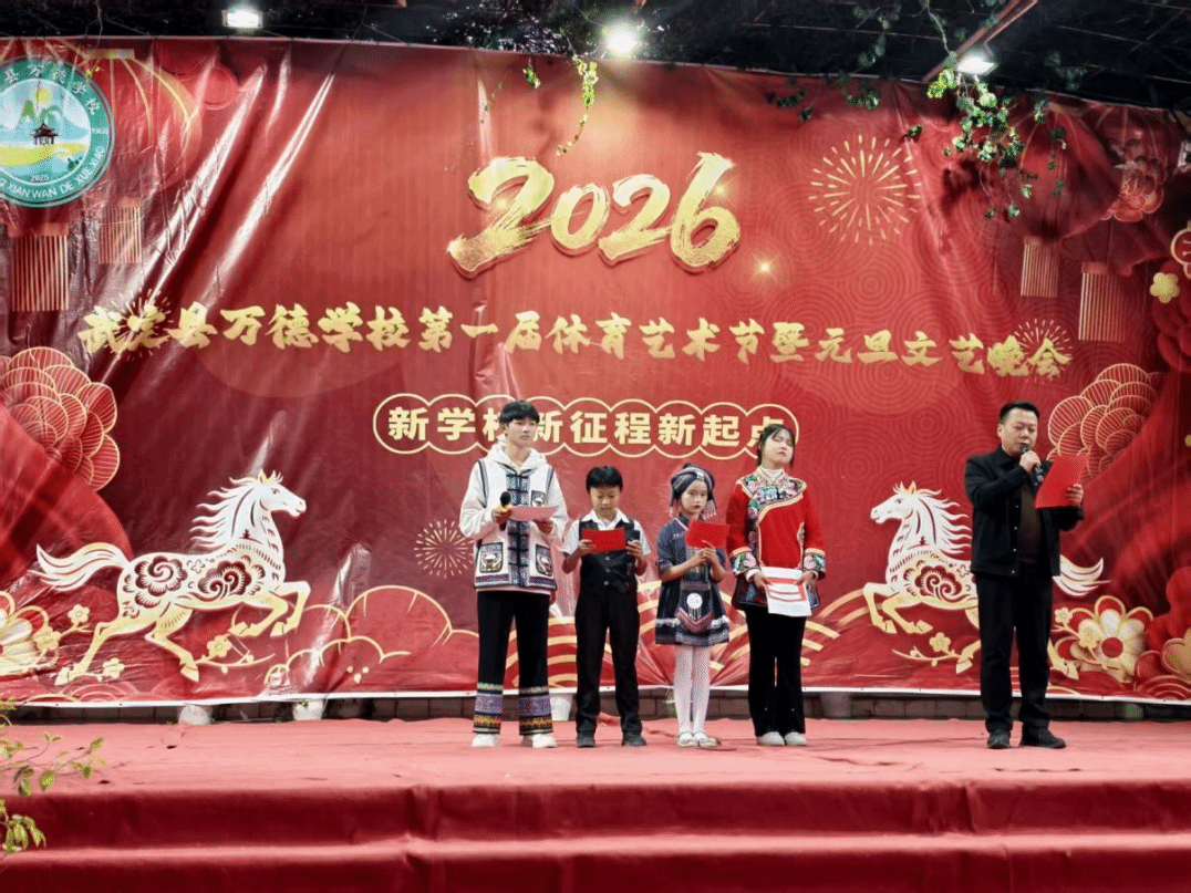 表演环节结束后,学校为文艺表演中的优秀班级和个人举行颁奖仪式,掌声与欢呼声再次响彻校园。本次的体育艺术节暨元旦文艺晚会,既是学校素质教育成果的集中展示,也为学子搭建了展示个性、挥洒激情的舞台。旧岁已展千重锦,新年再进百尺竿,站在2026年的新起点,万德学校全体师生将凝心聚力、锐意进取,共同谱写山区教育高质量发展新篇章。
