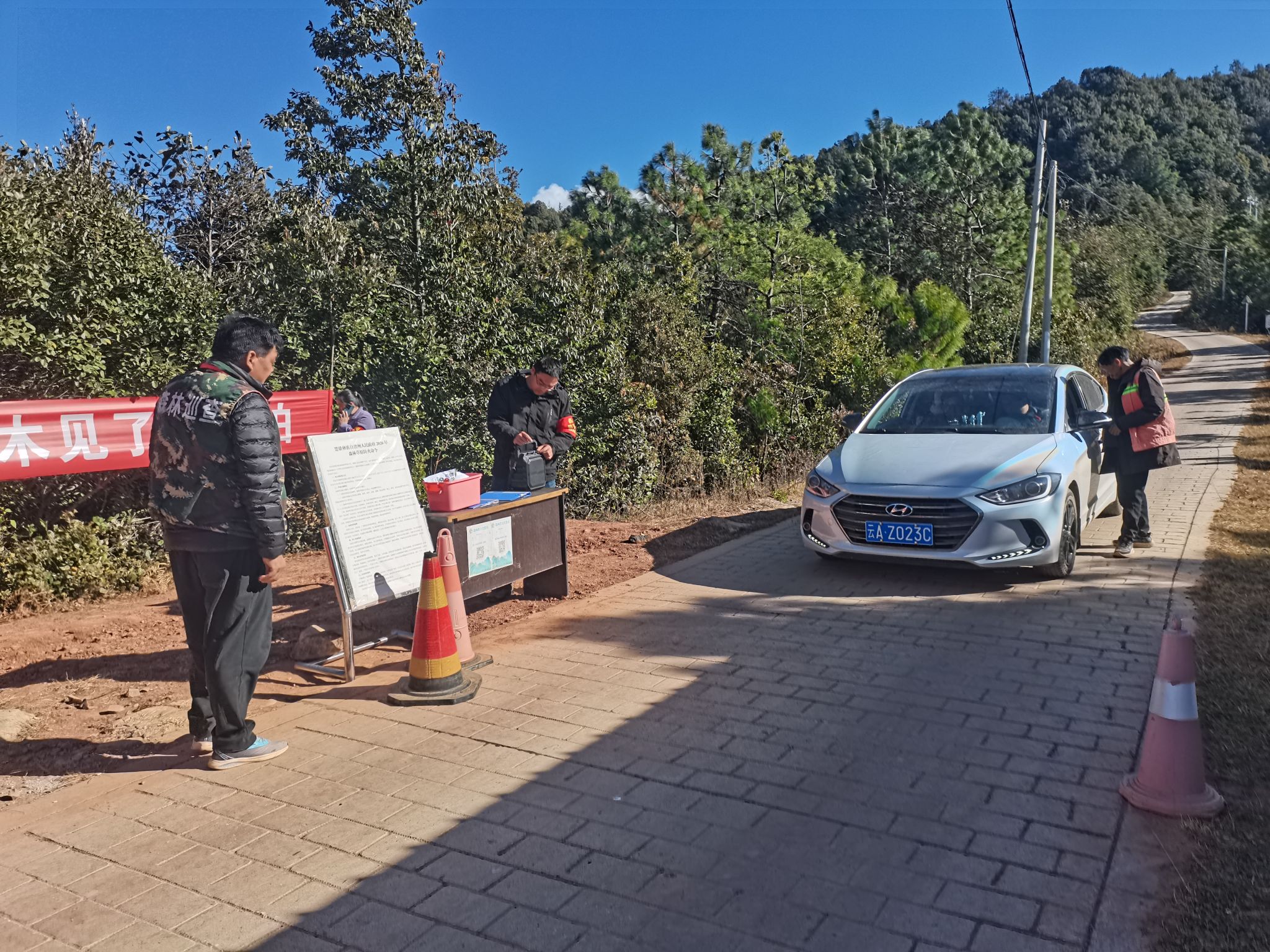 “您好,请扫防火码登记,若携带打火机等火种请主动上交,林区严禁带入火种,感谢您的配合!”走进白路镇关坡堵卡点,护林员正有条不紊地对过往车辆、人员开展严格检查,这是该镇筑牢森林草原防灭火屏障的生动实践。