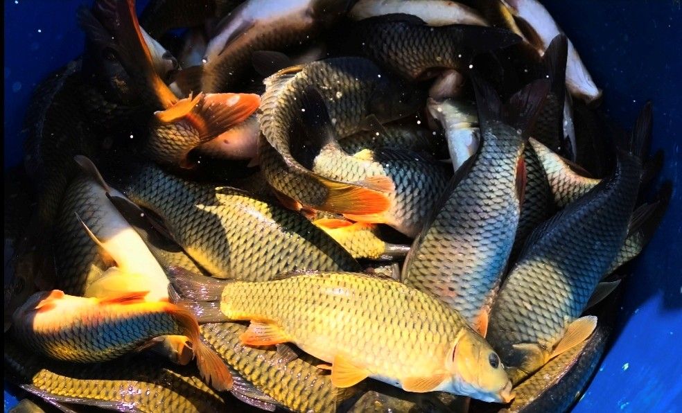 图为:即将放入摸鱼池的鲤鱼 叶伟琳摄