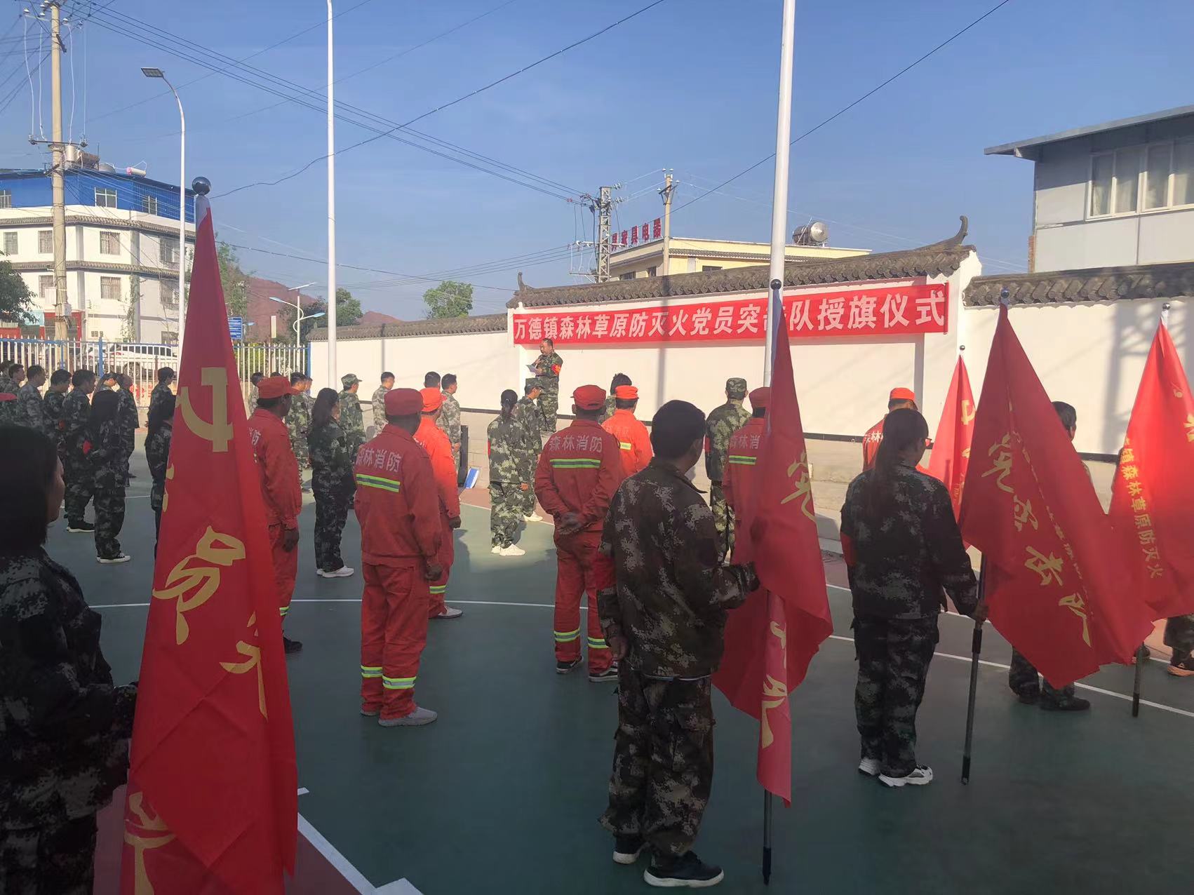 “一面旗帜、一块阵地、一支队伍、一份承诺。”4月28日上午,万德镇党委紧紧围绕习近平总书记关于“绿水青山就是金山银山;人民至上,生命至上;守土有责、守土担责、守土尽责”的重要讲话精神,举行了“攻山头 打硬仗”森林草原防灭火党员突击队授旗仪式。镇全体干部职工、各村党总支书记、各村护林队长、镇全体扑火队员参加此次活动。